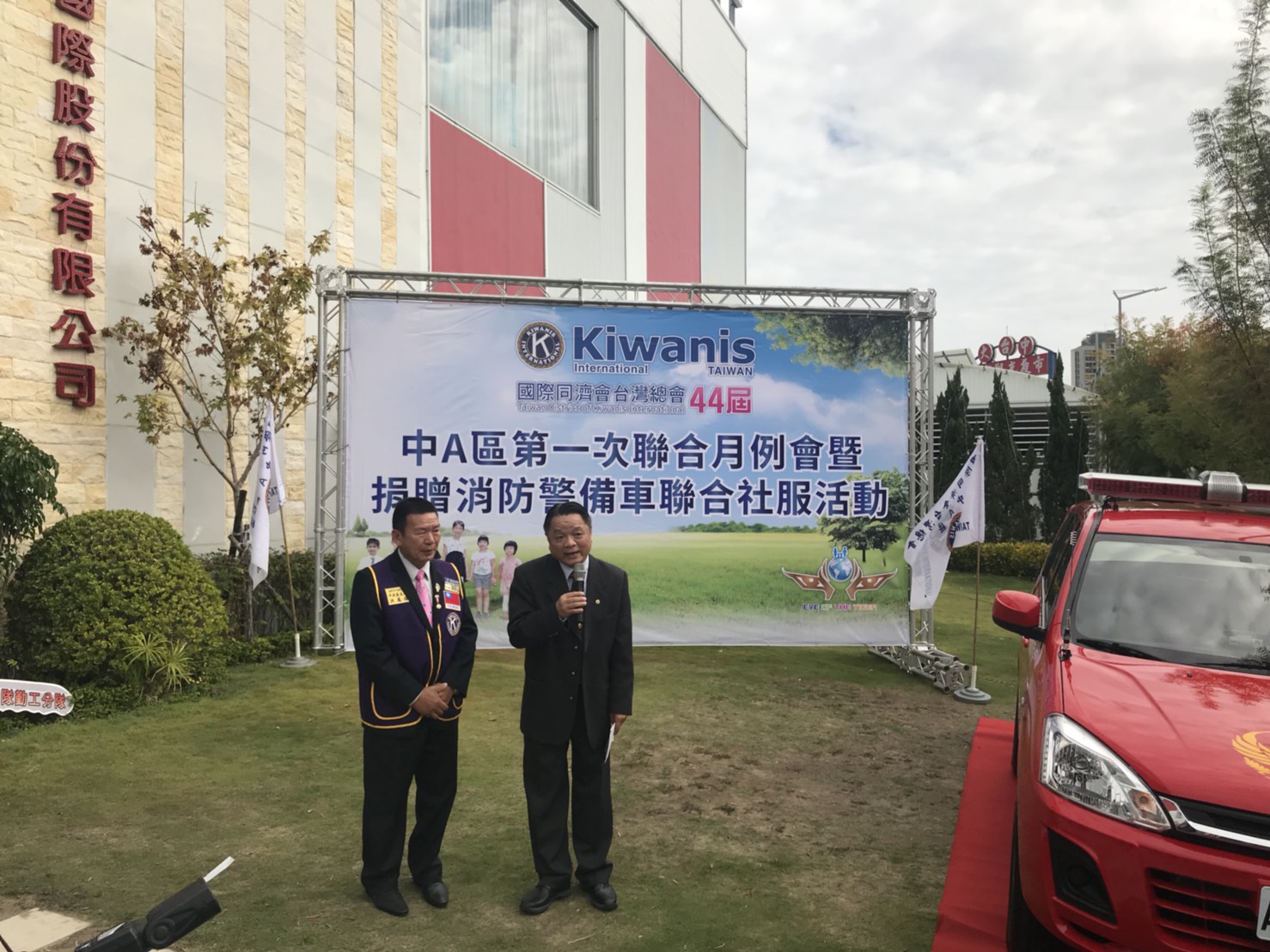 國際同濟會台灣總會第44屆中A區指出,有感於「取之於社會、用之於社會」的理念,因而捐贈消防警備車,也盼藉此拋磚引玉,號召更多人一起將社會資源挹注於消防救災工作。(12/2*6)*消防局
