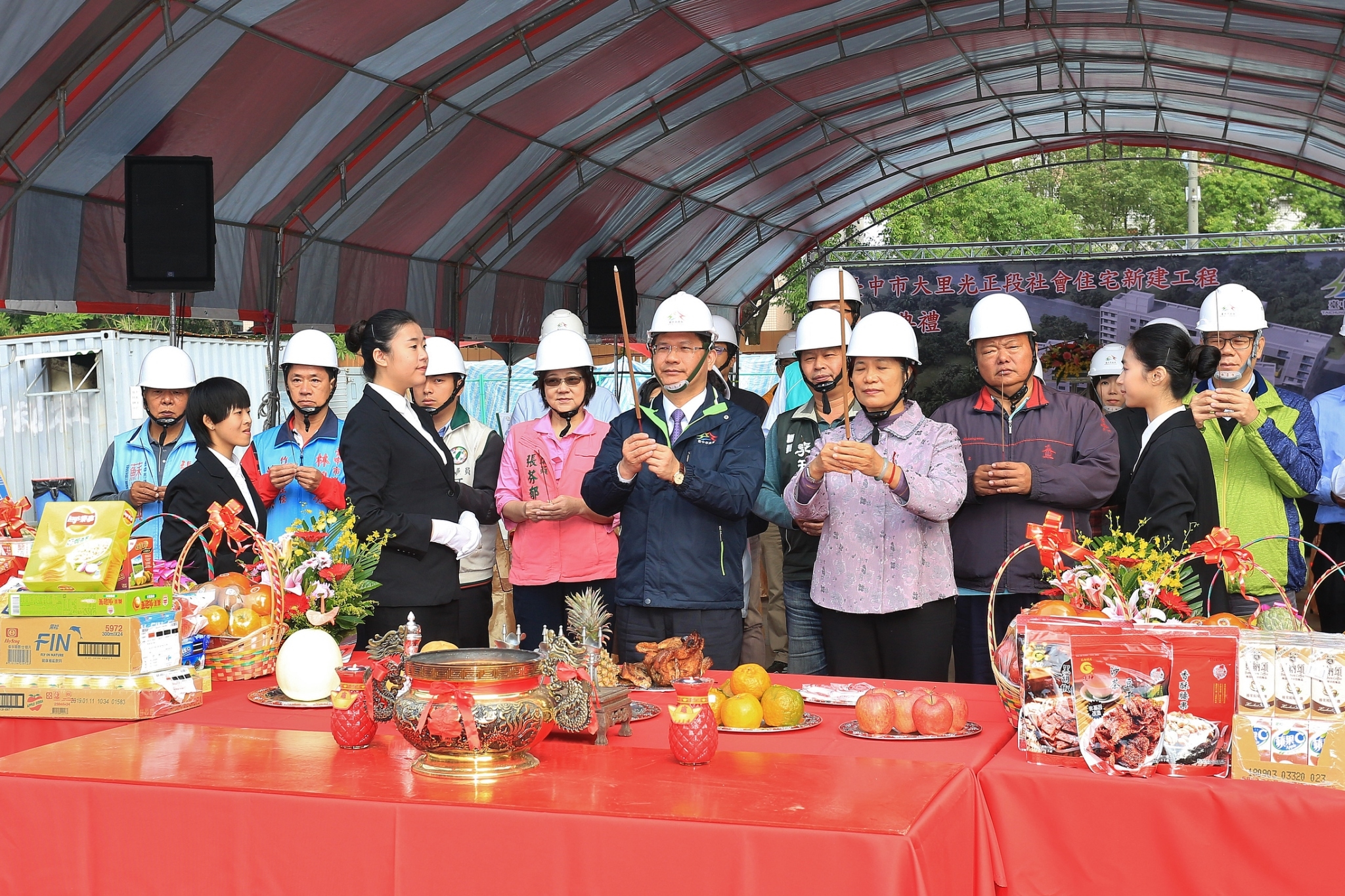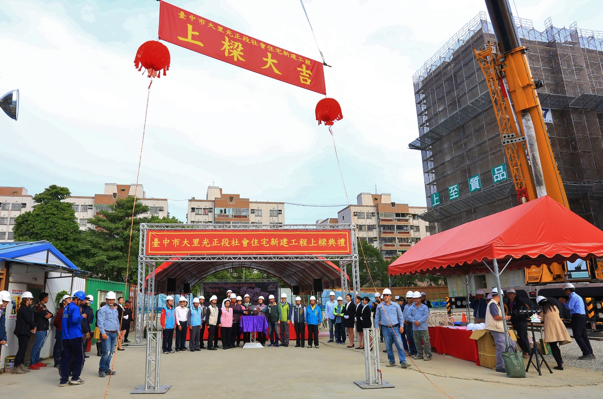 今日上梁典禮由市長林佳龍主持,內政部次長林慈玲、國宅組長朱慶倫、市府都市發展局長王俊傑、住宅發展工程處長許由興、市議員張芬郁、李天生、張滄沂、邱素貞等人皆到場見證並祈求施工順利,工程如期如質完工。