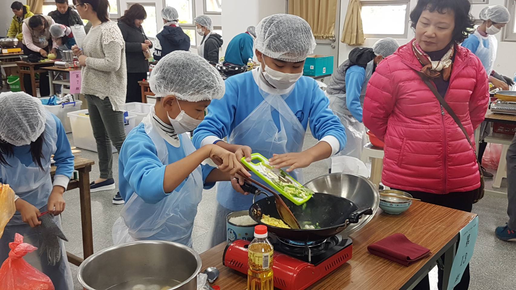 而學校感念社區長輩的貢獻,與瑞井社區發展協會合作,邀請長輩入校共同歡慶收成,五年級學生以氣勢磅礡的太鼓表演熱鬧迎接,幼兒園也帶來可愛活潑的演出,最後還有學校節奏樂隊演奏,在歡愉氣氛中,孩子們分享自己耕耘成果製成的料理,也從為長輩服務中學習感恩惜福。