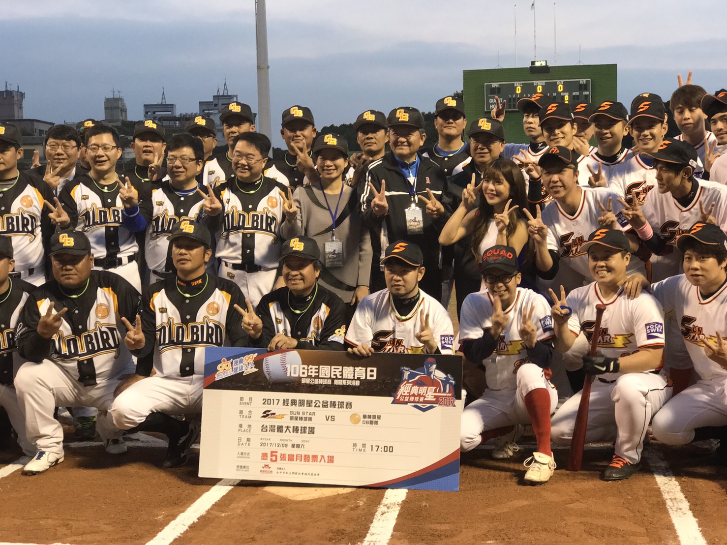 2017經典明星公益棒球賽,繼今年10月與台北御聖High Match女子棒球隊合作,在台北市打響第一炮之後,第二場與市府運動局合辦,今日下午在台中台灣體育大學棒球場熱鬧開打,民眾只要憑5張發票即可免費進場,這次OB聯隊陣容除了退役職棒球員之外,還加入了四位來自國會的即戰力,分別是立法院副院長蔡其昌、立委張廖萬堅、吳秉叡、李俊俋等人,賽事精彩。