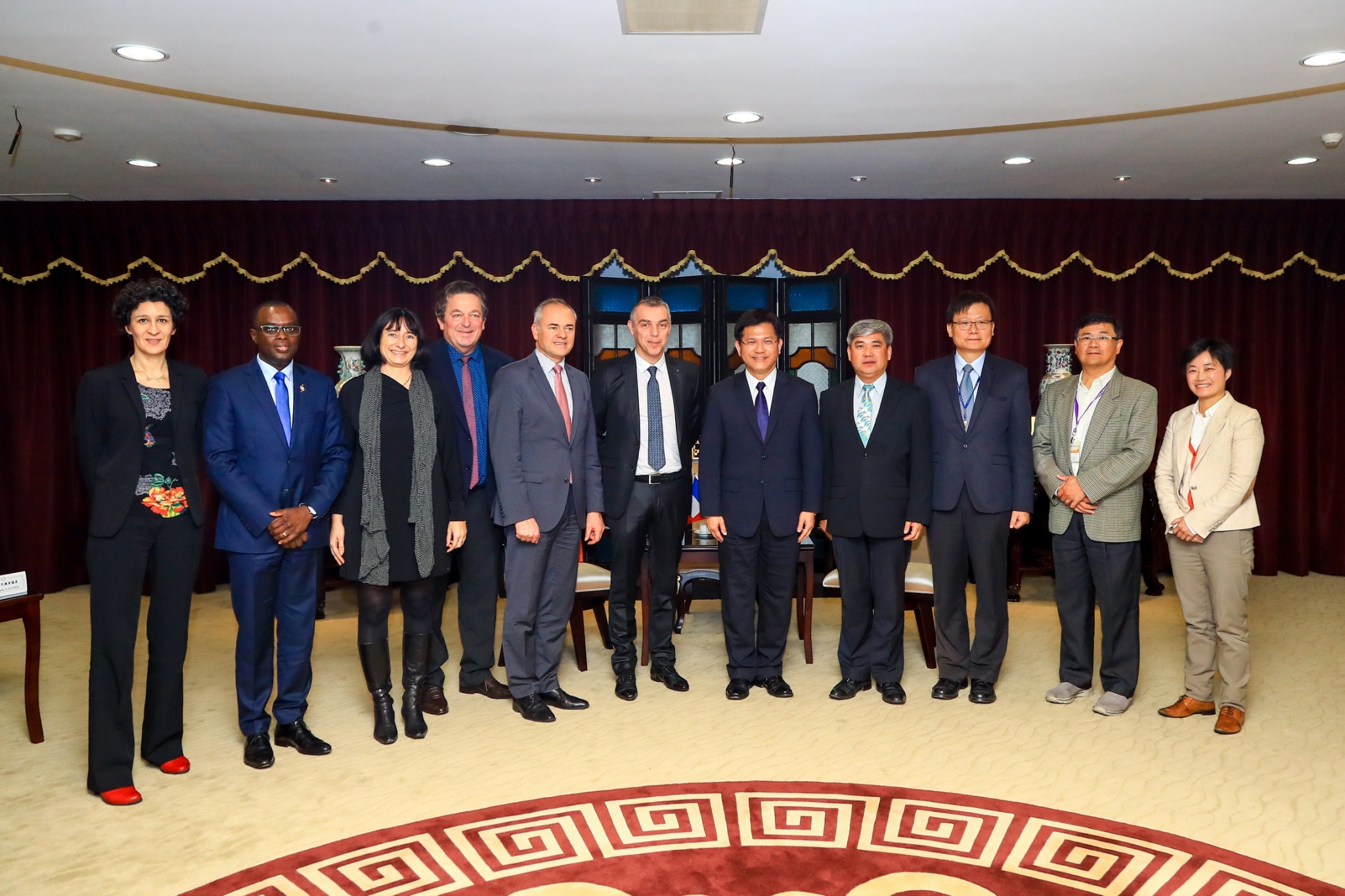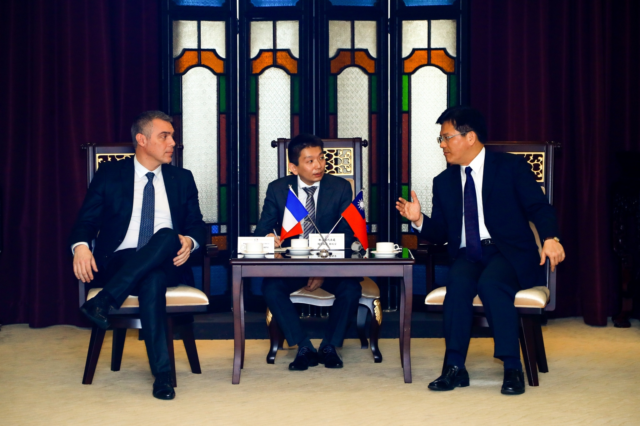 今日法國國民議會友台小組主席Jean-François CESARINI(塞沙里尼)議員、Jean-Jacques GAULTIER(高帝耶)議員等一行人至台中市政府拜會市長林佳龍,雙方針對未來企業交流、文化與數位結合等議題進行交流。