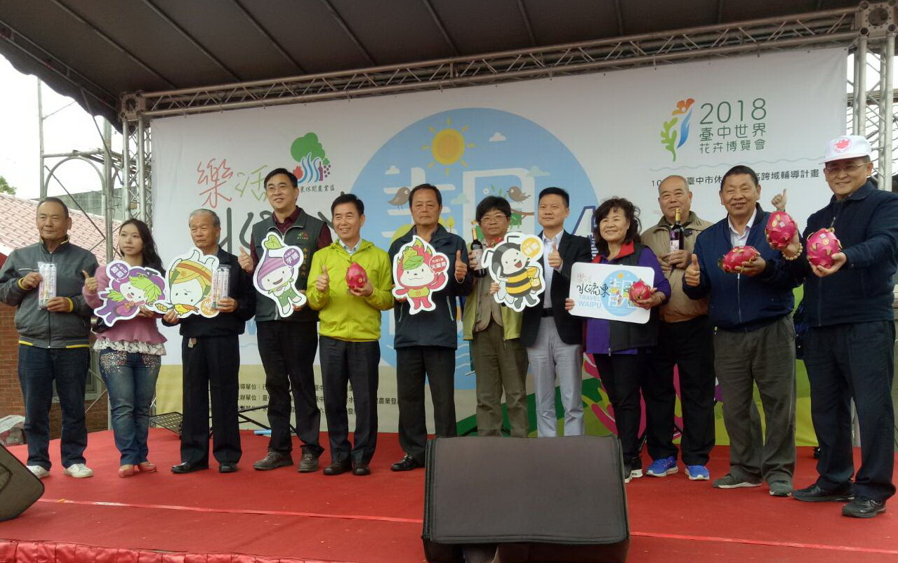 今日活動包括農業局副局長蔡勇勝、外埔區長卓義騰、市議員吳敏濟及李榮鴻、台中市農會總幹事林育葦等人都共襄盛舉,邀請全國民眾一起前往水流東休閒農業區觀賞清幽景色、品嚐美酒,也體驗農村傳統米食文化,享受精采豐富的假日時光。