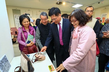 林市長今(17)日在社會局副局長陳仲良陪同下前往參與活動開幕式,並在作品人的引導下,欣賞書法、攝影、手工創作等精彩內容;林市長說,他老了也要報名,因為阿公阿嬤學習新課程,孫子也會跟著學,促進子孫感情。
