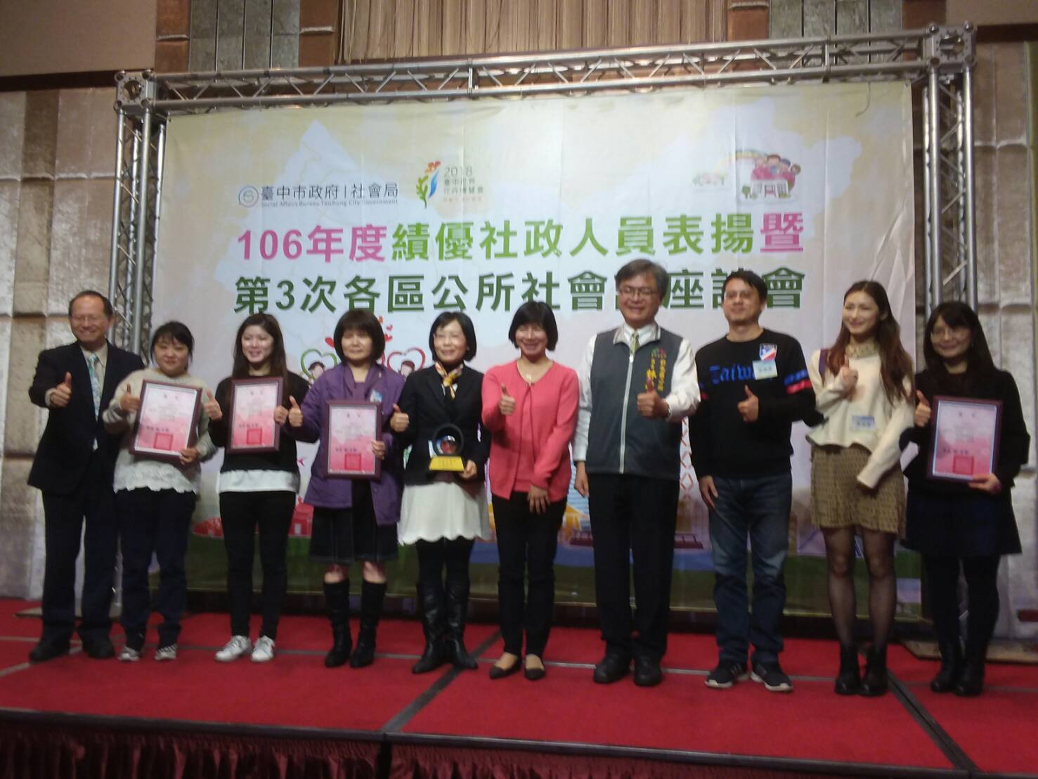 林副市長今日出席績優社政人員表揚活動,並現場頒獎予獲獎人員及團體,她表示,台中市的社會福利措施,並非傳統社會福利現金的給予,而是以社會投資為理念,推出各項社會福利政策,提供實際的照顧服務,減輕年輕人負擔,並使照顧服務產業也能獲得發展,進一步增加就業機會,產生良性循環。