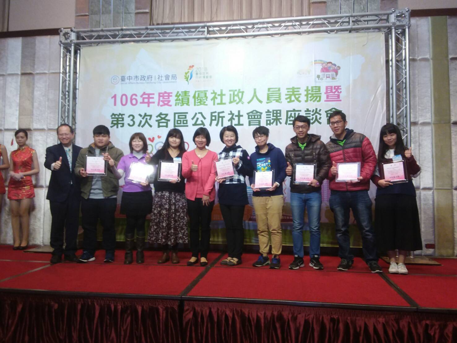 社會局表示,這次125名績優社政人員中,包括資深敬業服務獎32名、服務績優獎91名及特殊貢獻獎2名;現處福利多元時代,政府部門不再是唯一的福利服務提供者,更需要透過政府與民間單位共同合作,促使民眾獲得更多元的服務,未來市府也將持續扮演督導角色,確保服務品質。(12/21*6)*社會局