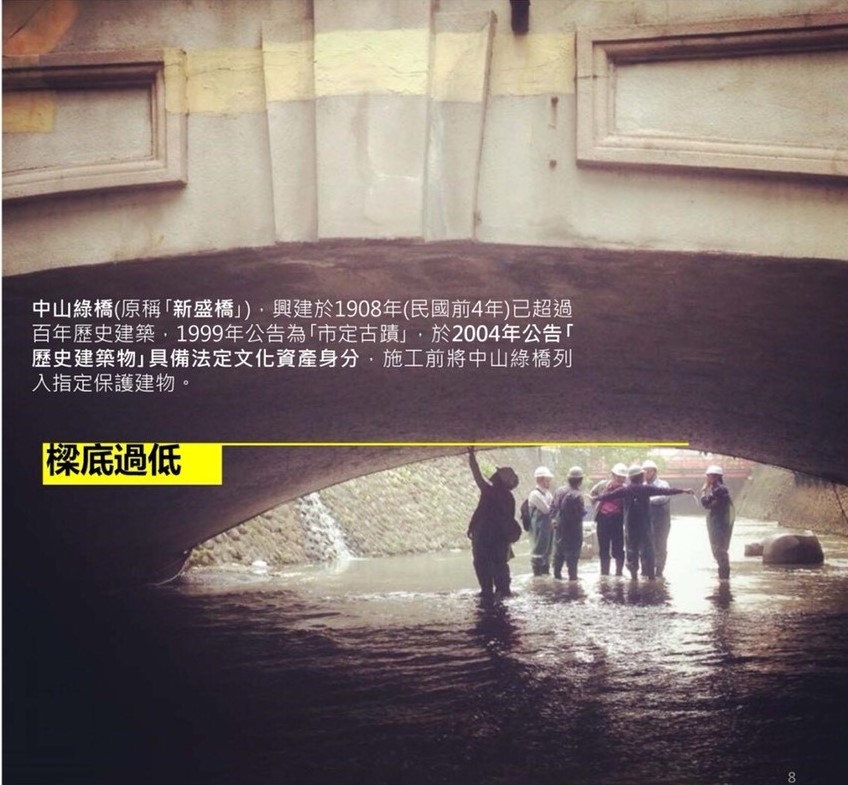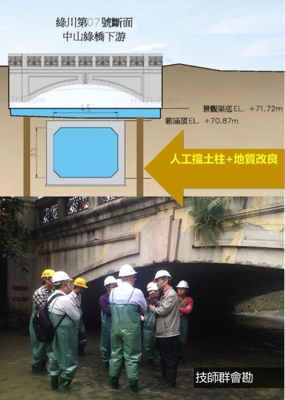 水利局表示,防洪安全在整治綠川中一樣重要,綠川設排水箱涵最主要的目的是解決中山綠橋的通洪瓶頸,可增加中山綠橋88%通洪斷面,滿足區域排水25年洪水頻率的保護標準。在兼顧保存百年歷史的中山綠橋與達成防洪保護標準的雙重前題下,這是目前最好的方案。