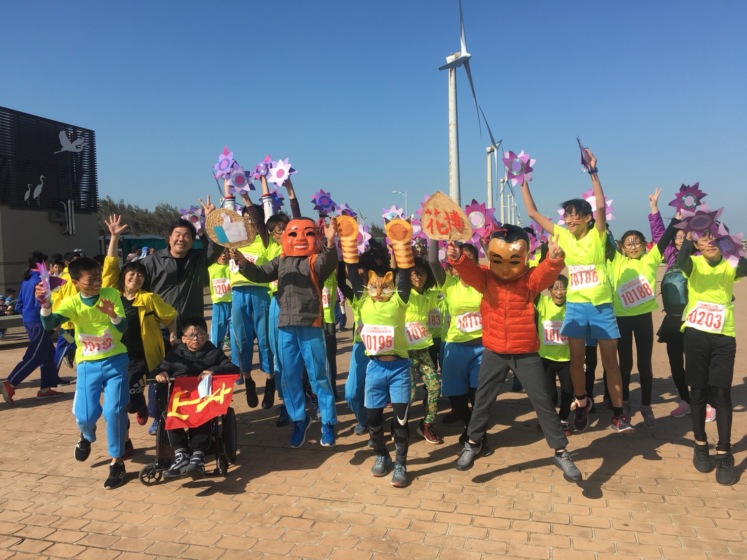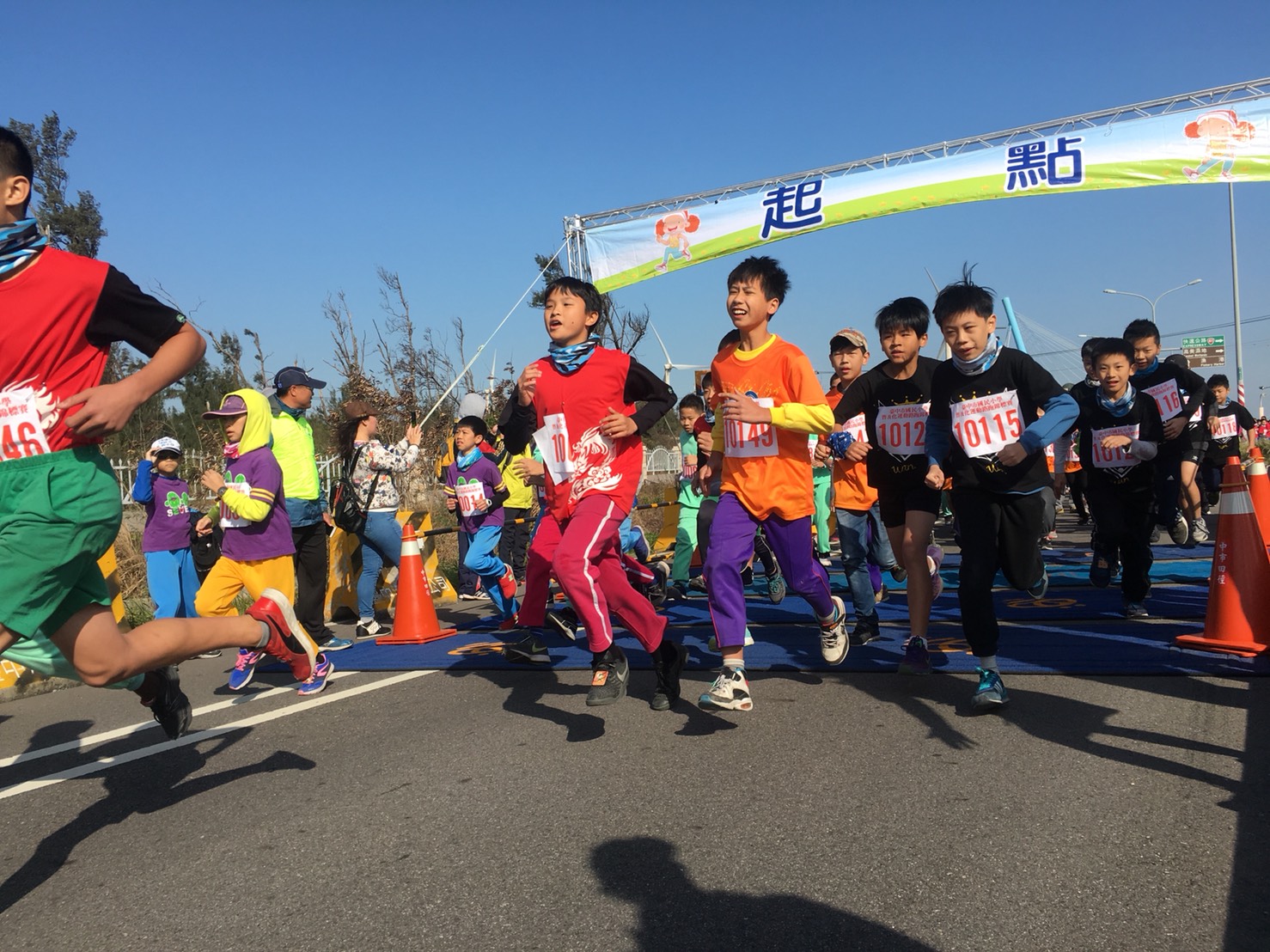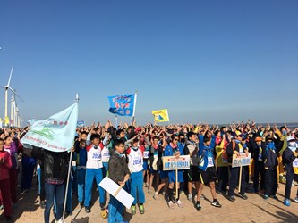 9時50分鳴槍起跑後,現場4300名師生由高美濕地景觀橋前出發,繞行中一路段,長約1.5公里;今年的路跑競賽結合花博元素,同時舉辦「花博創意造型GO」活動,鼓勵師生運用花博Logo融合高美濕地及各校在地元素,為路跑活動增添新亮點。