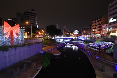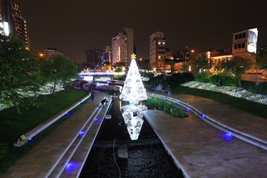 耶誕節到來,台中市政府發揮創意,在熱門景點柳川打造全國首座水中耶誕樹,並在已整治河段布置各式美麗的光景藝術,開幕至今已吸引近20萬人前往欣賞。水中耶誕樹配合耶誕節結束,將展至12月26日止,但週邊的超大禮物盒、浪漫鬱金香、玫瑰花海、橋下光廊道及七彩愛心樹等光景藝術,則持續展演到明年3月4日,歡迎踴躍參觀。