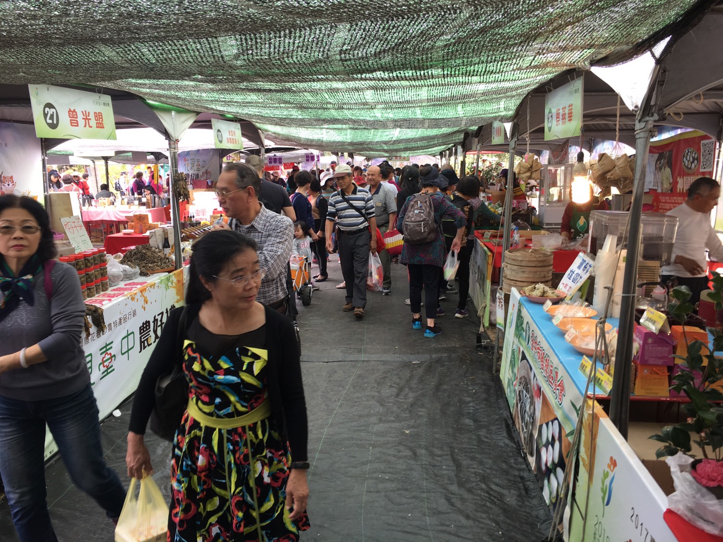 「花現台中農好禮」農特產品行銷區共108攤,結合台中各區的優質農特產品,讓參觀民眾可以方便品嚐最新鮮的在地農特產,現場只要消費滿300元,即可參與摸彩活動,有機會獲得住宿卷及優質的農特產品禮盒。