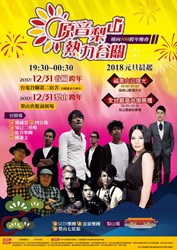 除了台中與后里現場兩場跨年晚會外,市府也與交通部觀光局共同在谷關、梨山兩地舉辦跨年活動。谷關場邀請3度入圍金曲獎的「四分衛樂團」、女歌手潘越雲獻唱,以及原住民舞團熱舞;梨山場則邀請在地的雷滾樂團、梨山七匹狼及GUTS樂團演唱,讓遊客體驗全台海拔最高的跨年晚會,一起聽民歌、唱搖滾,泡在暖暖溫泉中迎接新年到;元旦還有福壽山天池迎曙光、全台最高升旗典禮活動,詳細資料請見活動介紹(http://bit.ly/2BPrhwX)網頁。
