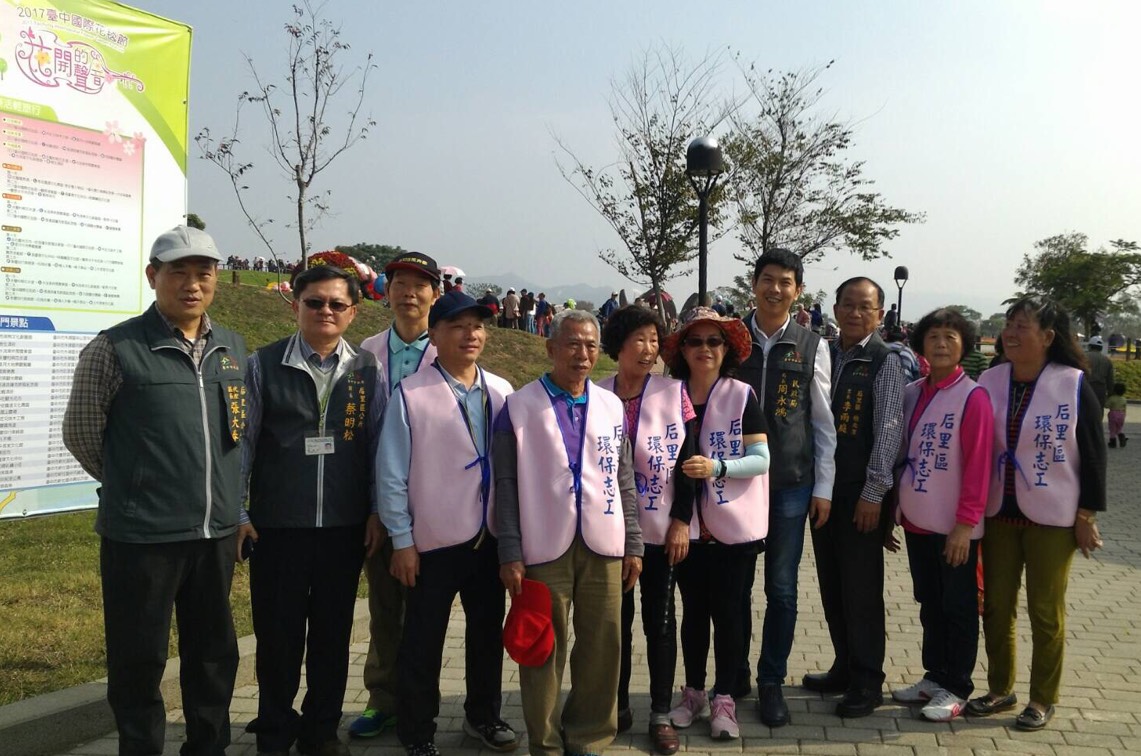 為了讓參觀民眾都能有一趟美好的旅程,后里區在地的環保志工自發性組成18隊,負責協勤展區內環境整潔、引導民眾做好垃圾分類等工作,民政局周局長日前特地到展場慰勉志工,感謝大家的辛勞,也期盼參加民眾能多多配合現場志工的引導,做好園區內的垃圾分類,保持景觀的美麗,讓所有遊客更加認識台中這座美麗的花園城市。(12/29*14)*民政局