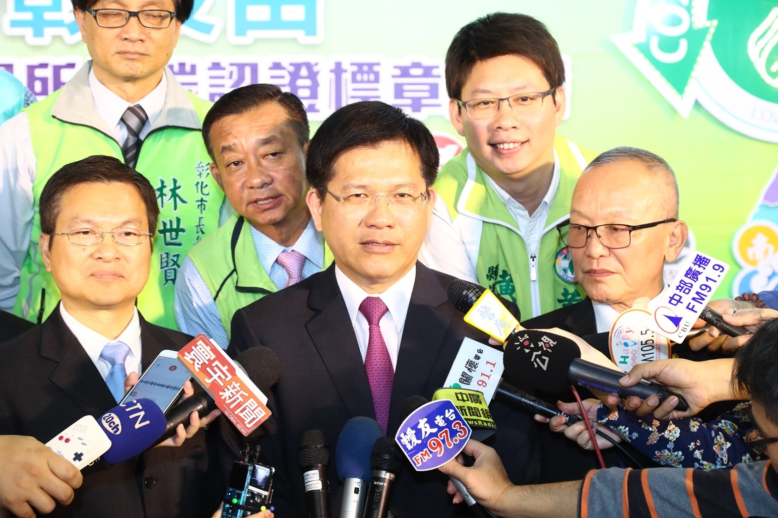 林市長、彰化縣長魏明谷、苗栗縣長徐耀昌、南投縣副縣長陳正昇等人,今日在中彰投苗四縣市首長會議後,接受媒體訪問關於中部空汙基金分配公平性問題。