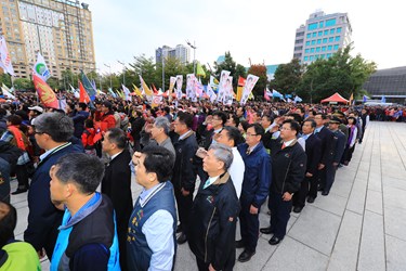 民政局表示,升旗典禮除了透過多國籍新住民領唱,展現台中多元民族文化的融合力,也邀請蟬聯14年冠軍的東山高中啦啦隊、具55年歷史的台中女中樂儀旗隊,及剛成軍不到半年即獲得雙料冠軍的仁美國小啦啦隊,還有極具地方特色的台中魚市場帶來太鼓開場表演,展現台中市的熱情與活力。另外,現場並發放限量花博運動毛巾,受到民眾熱烈索取。