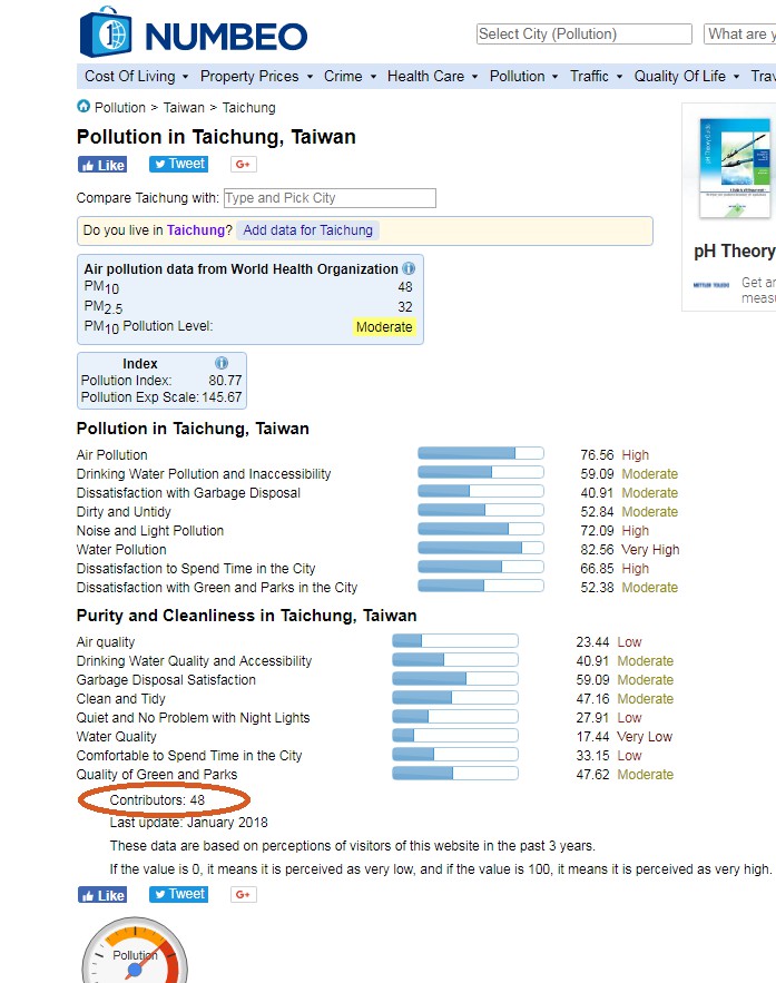 台中市政府表示,Numbeo是一個國外的線上數據庫,讓用戶分享和比較國家和城市之間的生活成本資訊及相關調查感受,但數據準確性除無第三方檢查或審計,亦非透過客觀的調查及比較,往往容易受到少數用戶端的輸入影響調查結果。