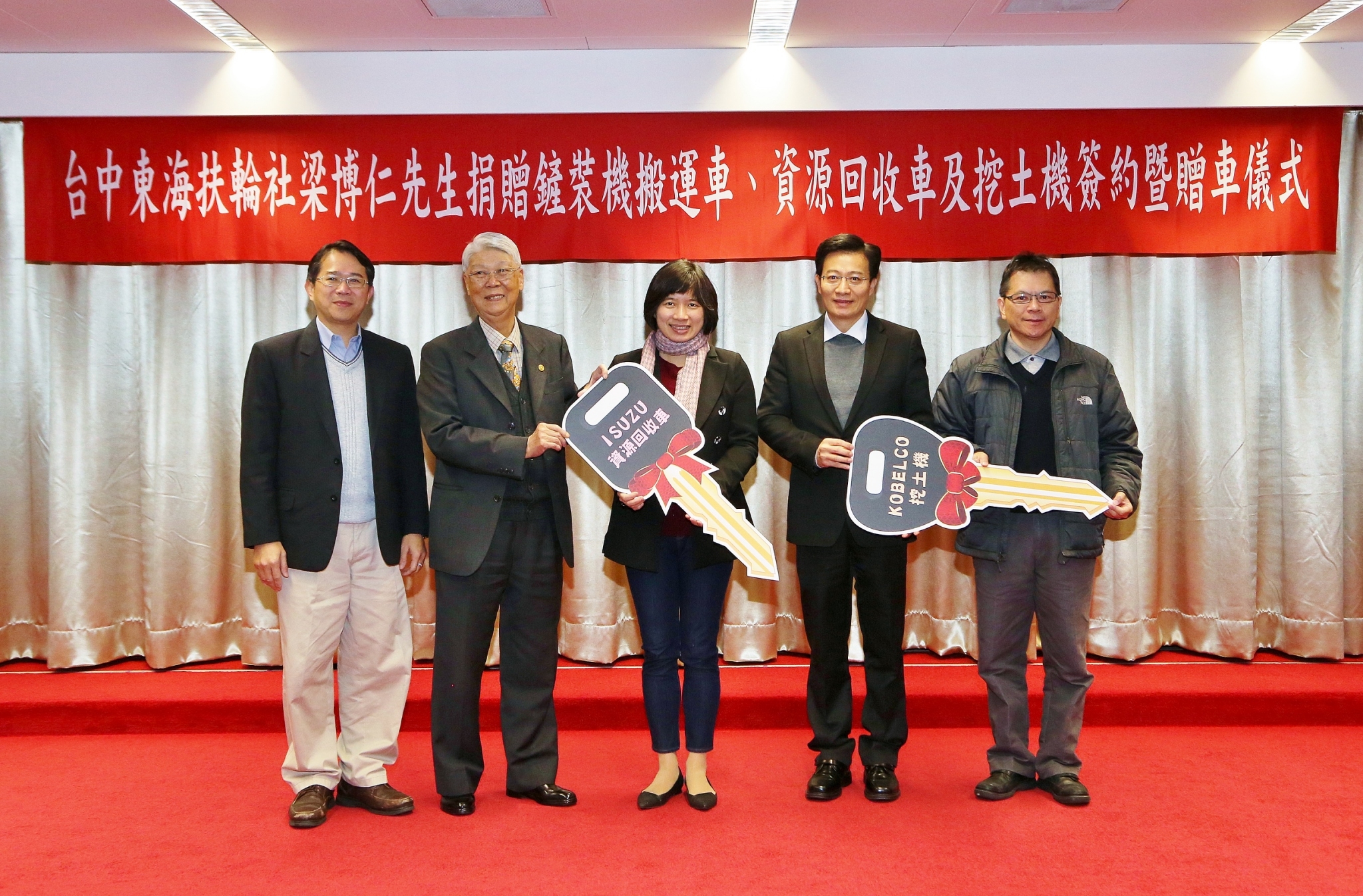 林副市長指出,垃圾清運與民眾生活息息相關,在環境清潔的推動上,充足的工具配備有助於清潔人員執行相關作業,而颱風天後,道路上的樹枝需要運輸機具協助清除,更凸顯清運機具的重要;感謝東海扶輪社社友梁博仁的善行義舉及長期投入公益,為全市的環保共盡心力。
