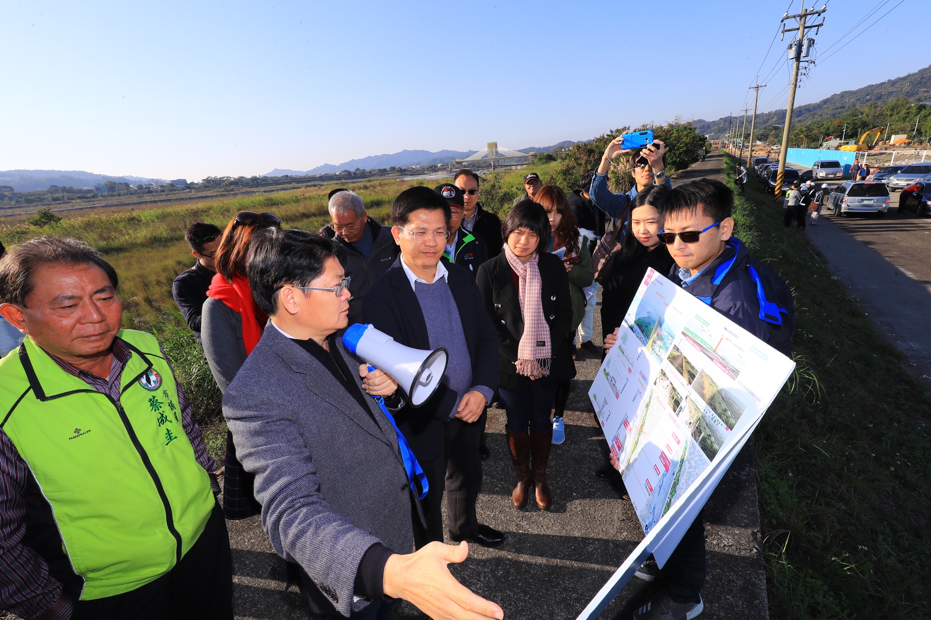 林市長昨(11)日前往視察東勢客庄地方建設,包括副市長林依瑩、市府建設局長黃玉霖、教育局長彭富源、農業局長王俊雄、客委會主委劉宏基、東勢區長徐佩鈴,以及市議員蘇慶雲、蔡成圭等人都共同參與;市長夫人廖婉如也陪同視察實驗教育複合式園區,討論山城發展藍圖。