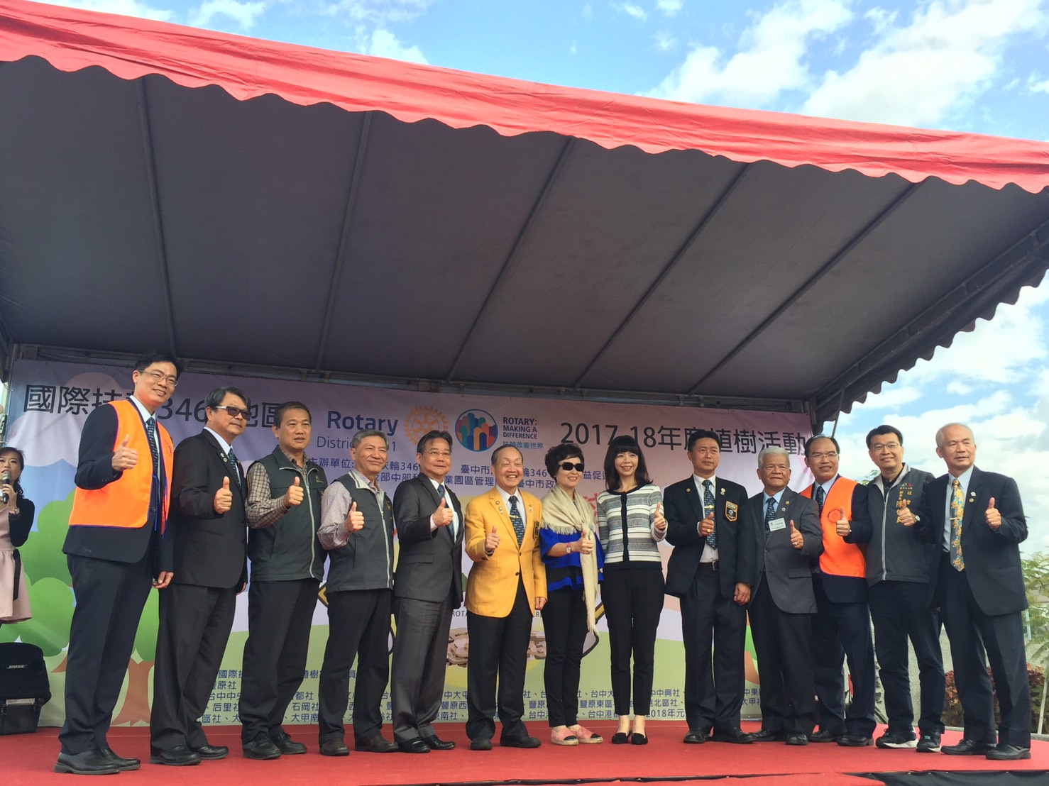 張副市長表示,為了對抗全球氣候變遷,同時改善空氣品質,今天扶輪社舉辦植樹活動非常有意義,市府全力支持。台中市今年將舉辦2018台中世界花卉博覽會,也邀請大家一起共襄盛舉。
