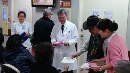 因醫院門診病人多屬高危險群,衛生局特別印發「請問醫師我符不符合公費流感疫苗接種條件」衛教傳單,除請門診醫師同時提供病患服務,讓就診民眾把握機會儘速接種,並可望紓解因流感疫情導致醫院急診壅塞情形;衛生局長呂宗學、副局長陳南松及張瑞麟日前也親自至醫院門診區發送衛教傳單,鼓勵就診民眾做好自我保護。