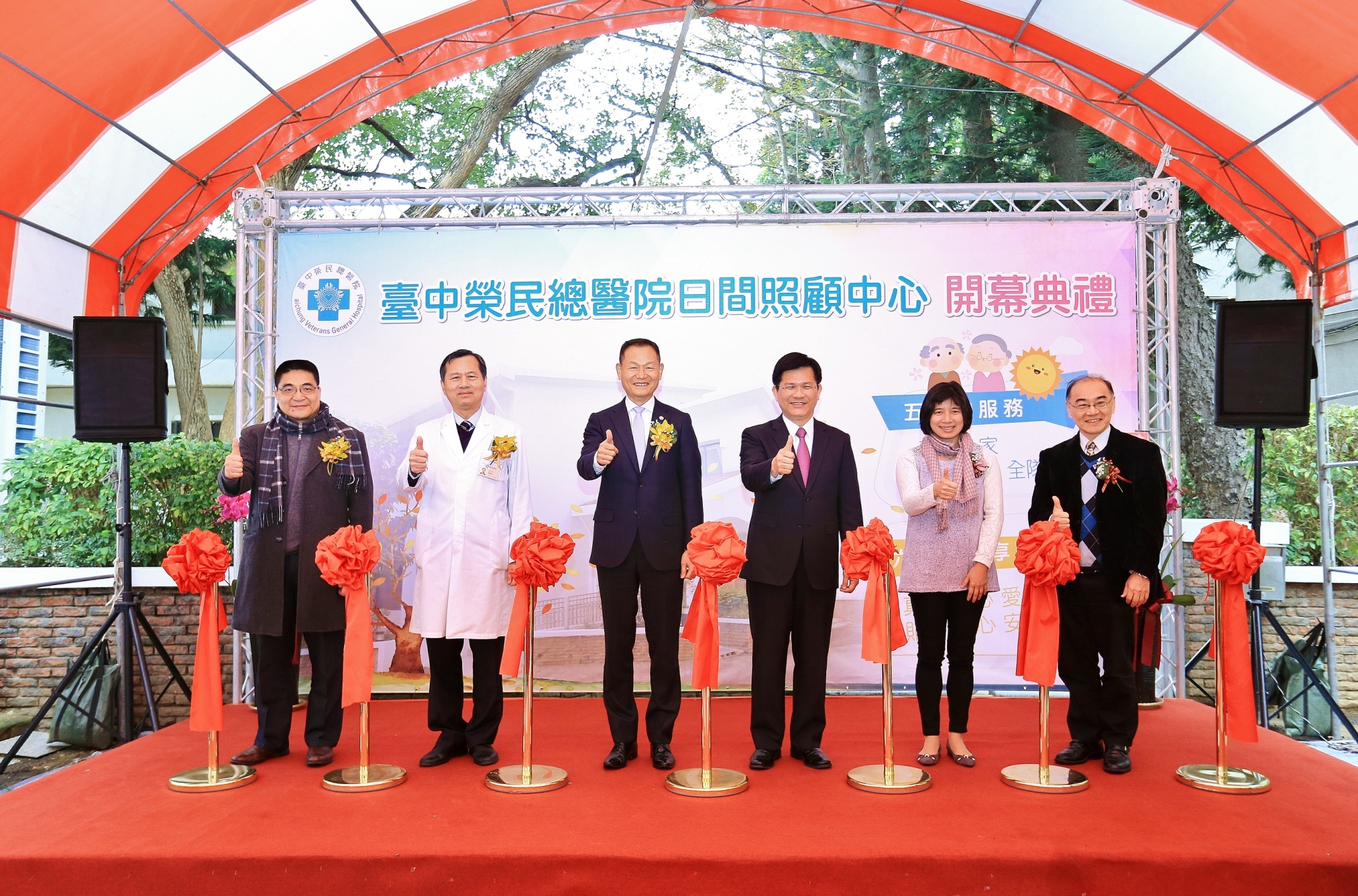 台中榮總院長許惠恒感謝市府對於台中榮總設立日照中心的大力幫忙,日照中心具有全方位的醫療專業人員參與,包括醫師、護理師、營養師、社工師與復健師等,藉由日間照護的介入,延緩失能失智狀況,也利用地理之便,將日照中心設置於台中榮總附設榮中幼稚園旁,屆由老幼共托共學的特色,讓日照中心的長輩身心加速恢復,同時也與鄰近的東海大學合作,由專業教師團隊一起服務高齡長者,期望日照中心開幕後造福中部地區有需要的長輩。