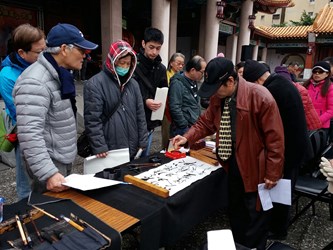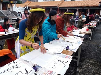 此次活動於孔廟的大成殿廣場邀請書法家與新住民朋友一起揮毫,展現台中市是友善國際新住民的城市,而今年台中世界花博將於9 月1日至10月28日試營運、11月3日至明年4月24日正式營運,邀請民眾共襄盛舉。(2/4*6)*民政局