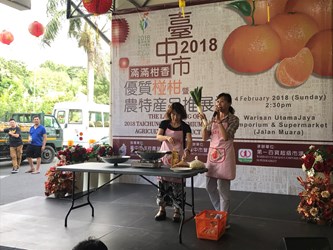 農業局輔導豐原區農會執行「107年度台中市優質椪柑國際行銷計畫」,並於今(4)日在汶萊第一百貨舉辦台中市優質椪柑暨農產加工品行銷推廣活動,將台灣台中好吃的椪柑推廣給汶萊消費者,並舉辦椪柑填色比賽及吃椪柑大賽,盼提高台中農產品在國際市場的識別與競爭力。