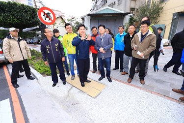 圓環南路人行道示範區工程,位處豐原交流道通往市區必經路段,即中正路至西安街間,雙側長約400公尺,市府將此路段作為豐原示範無障礙人行空間,並提升整體道路景觀風貌;林市長今日在建設局長黃玉霖的陪同下,聽取簡報說明並實地視察完工成果,市議員陳本添及在地里、鄰長等均到場關心外,市議員陳清龍、謝志忠、張瀞分等人也派代表出席。