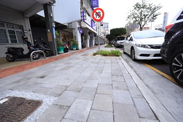建設局表示,此次工程將原有老舊混凝土舖面更新為透水舖面,透過透水舖面可增加雨水入滲速度並減少地表逕流,降低既有排水系統負荷,由於該路段銀行眾多,也規劃新增駐車彎4處提供16處機車停車格,方便民眾往來使用,並進一步協調居民排除佔用人行道空間的花盆等障礙物。