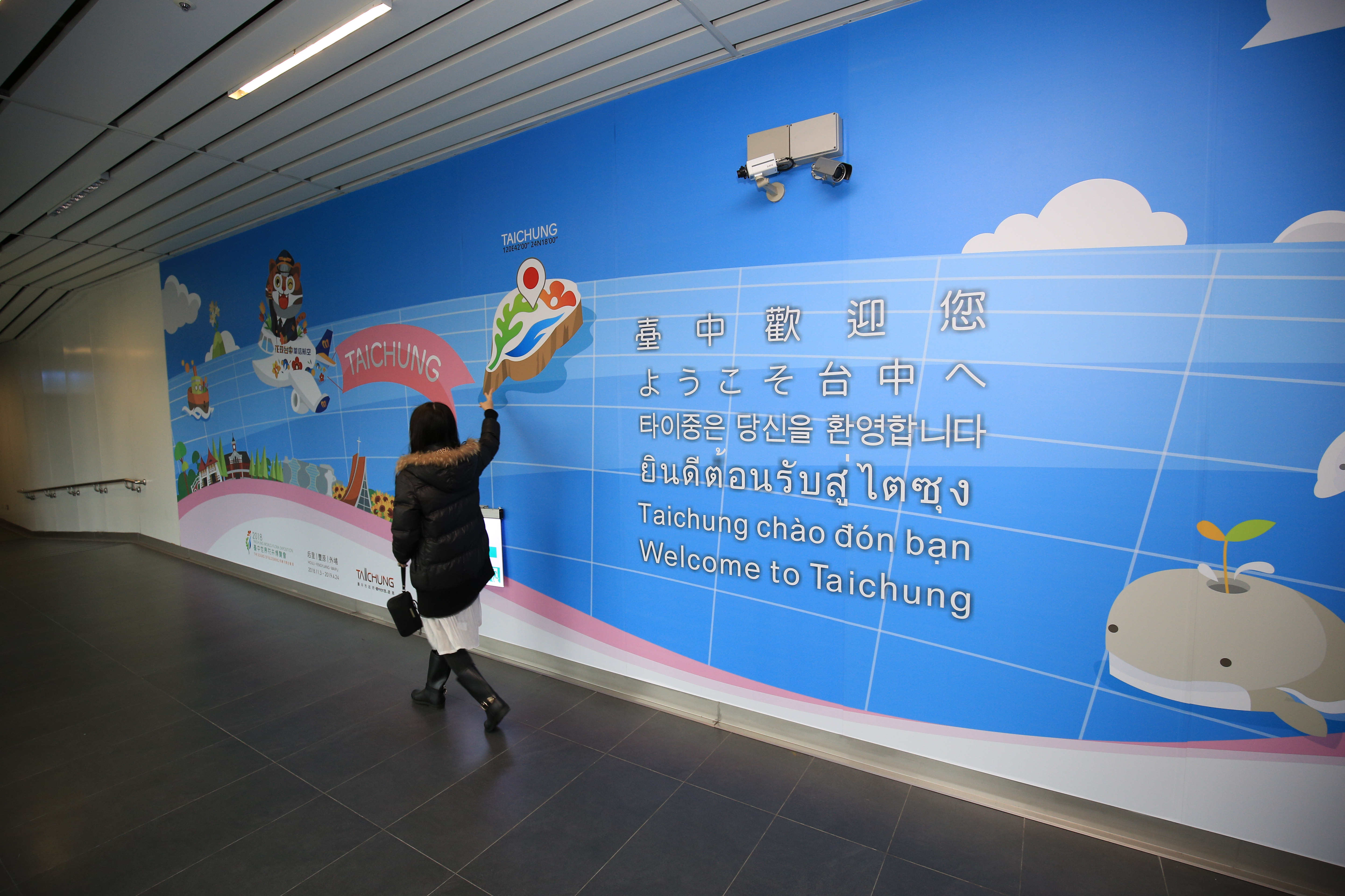 為向國內外遊客行銷「2018台中世界花卉博覽會」,台中市政府在台中國際機場二樓國際航廈的入境長廊,設置由3600多株植栽打造,綿延30公尺的植生花牆,用花香迎接出入境旅客,今(7)日舉辦記者會,宣告花博在全國機場起跑,市府也規劃為期一個月的抽獎活動,邀請全國旅客參加抽獎。副市長張光瑤表示,將台中之美推向國際,最直接的方式就是透過具體的意象,希望民眾穿梭機場時能停下腳步欣賞花牆,並邀請大家於花博期間來台中欣賞花卉之美。