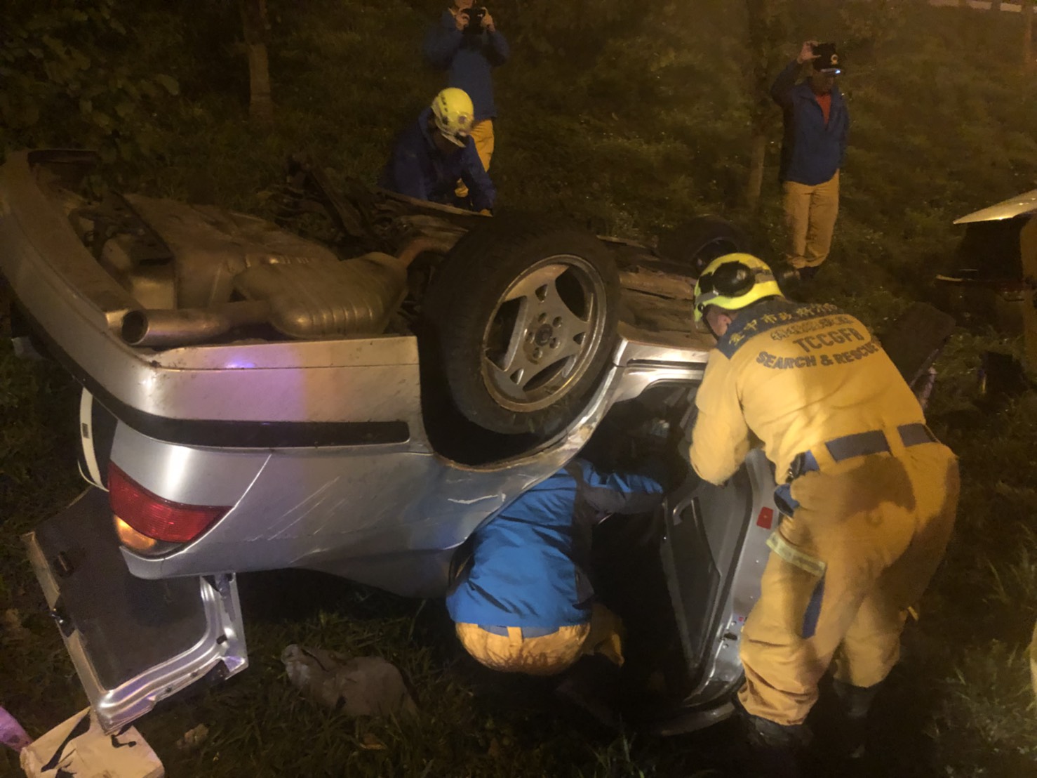 由於適逢寒流低溫及降雨,對於現場搜救工作發展相當不利,搜救人員頂著惡劣的環境下和死神搶命,歷經長時間辛苦的救災,特搜隊同仁結束勤務,返回台中的途中,在國道一號南下145.8公里處,發現一起自小客追撞事故,其中一部車輛翻覆且有三位乘客受困,搜救同仁以破壞器材實施救援,順利救出三位民眾,所幸三位民眾都是輕傷無須送醫。