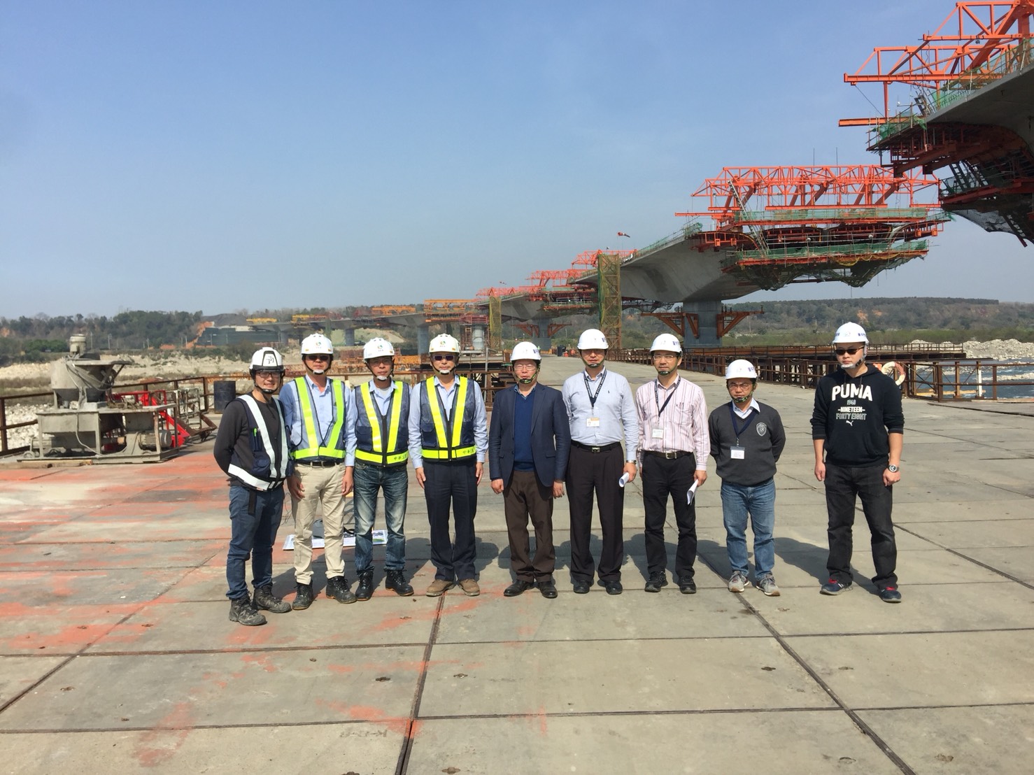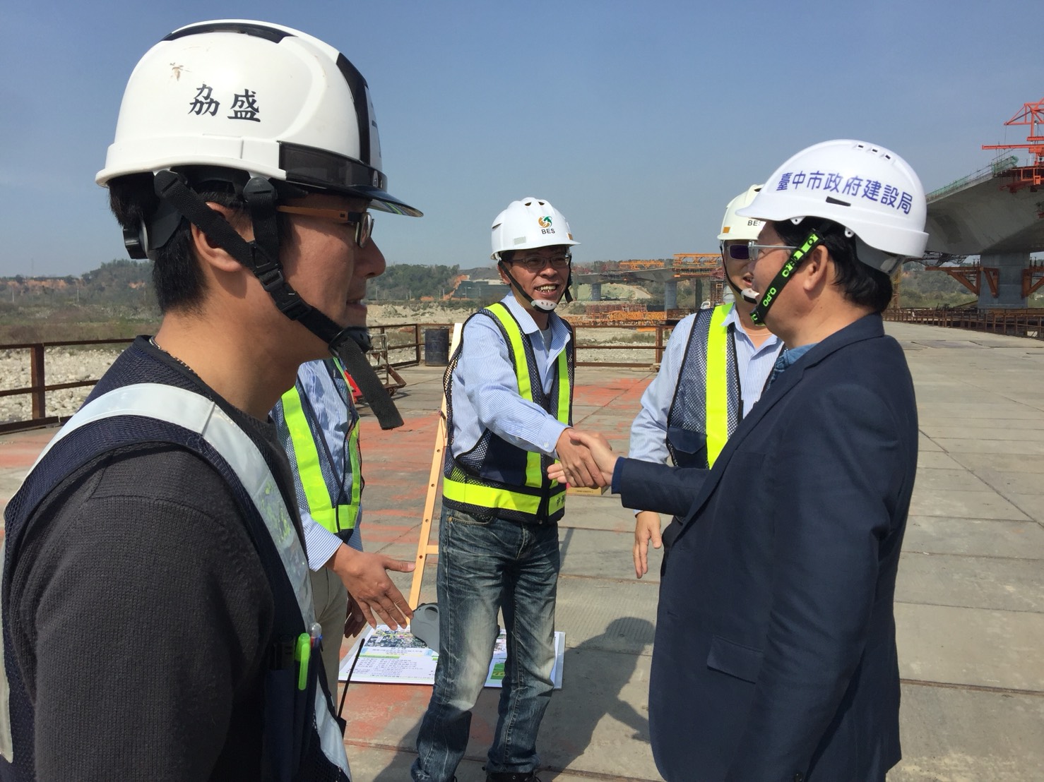 黃局長表示,兩座跨越大甲溪的聯外道路橋梁工程,尤其是大甲溪上游、后豐大橋東側的中科南向聯外道路新闢跨越大甲溪橋梁及南引道工程,因為在施工時溪床的大卵石塊,比現勘的大數十倍,平均一顆大卵石8立方公尺重達20噸以上,讓工程人員緊急應變調整工法,就地碎石剷除,比預期工進更耗時耗材,但施工單位增加機具人力,不但讓工程如期,還超前近10%。