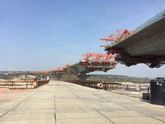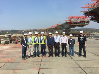 另外,在大甲溪下游、后豐大橋西側的國道四號神岡系統交流道跨越大甲溪月眉西側南向聯絡道橋梁工程,進度更是迅速。工程同時動員12台懸臂工作車,目前進度已超前16%。兩條聯外道路橋梁工程,中科南向聯外道路新闢跨越大甲溪橋梁及南引道工程以及國道四號神岡系統交流道跨越大甲溪月眉西側南向聯絡道橋梁工程,都能在今年9月初花博試營運前,8月底前通車。