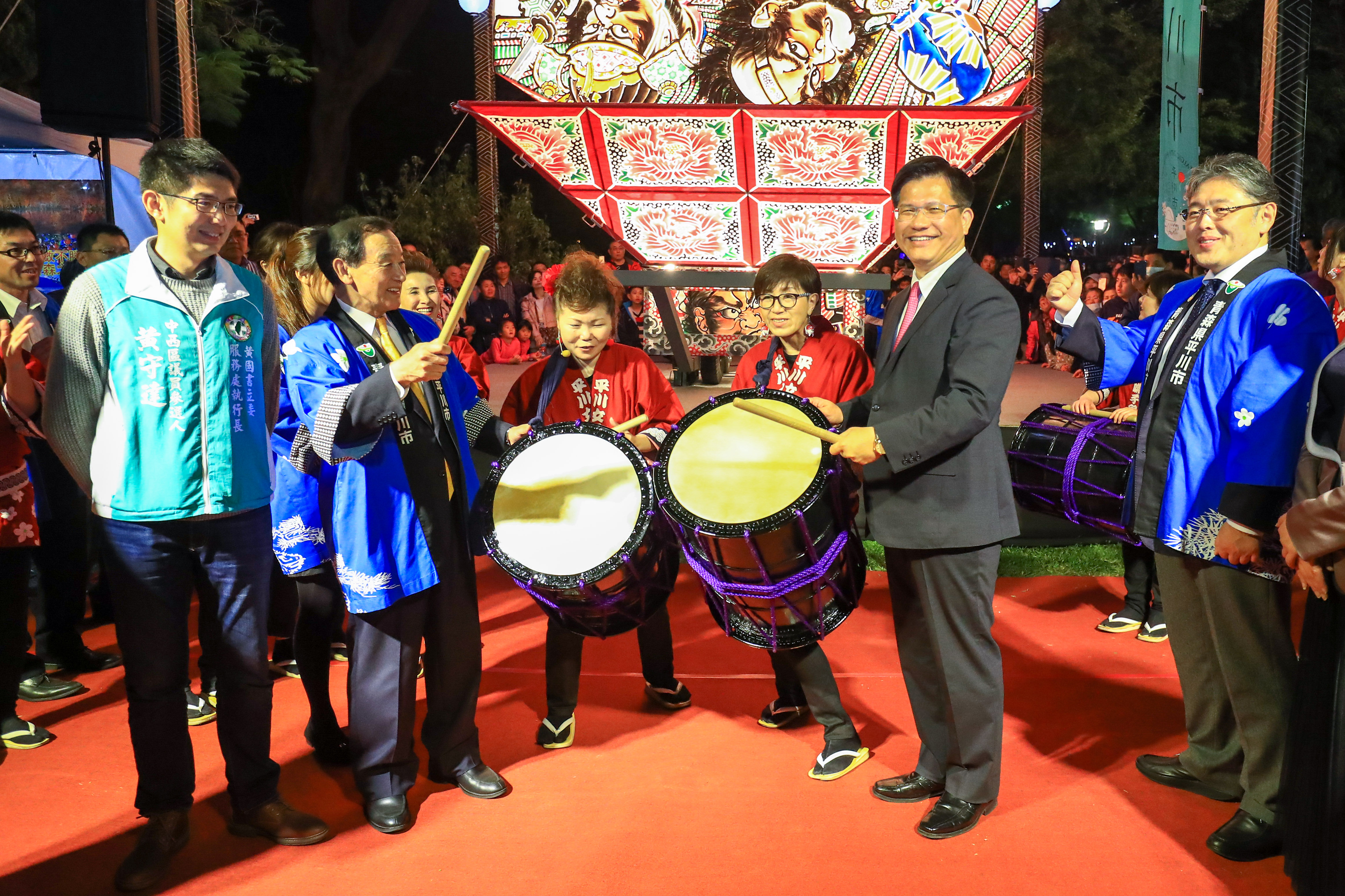 林市長表示,今年中台灣元宵燈會分別在台中公園及港區藝術中心登場,台中公園主燈為「公犬遠瞻」,港區藝術中心主燈則為「母犬守護」,這次並邀請到日本青森縣平川市的「扇型睡魔花燈」參展,相當吸睛,歡迎大家來台中欣賞美麗花燈;而台中和青森縣及平川市為友好城市,這次燈會的合作對促進彼此友誼也有很大幫助。
