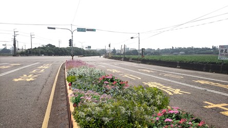其中,后里交流道的槽化島為花博后里展區門戶節點,設計上選用觀葉性灌木與現有植栽搭配,並以複層方式種植,搭配同心圓層次,創造花團錦簇的視覺效果。