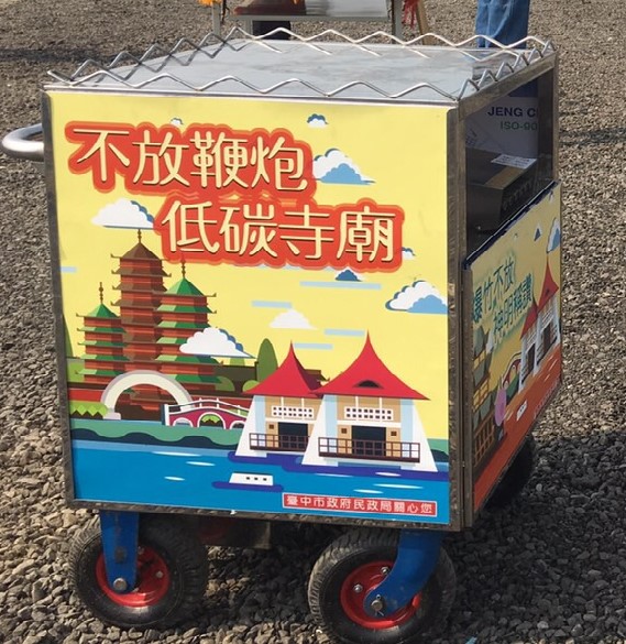 宮廟舉辦遶境、進香,沿途燃放煙火炮竹,不免影響空氣品質及炮屑垃圾問題,台中市政府民政局為了改變宗教慶典活動的刻板印象,推出以環保禮炮車替代傳統煙火炮竹措施,自去年起已陸續購置7台環保禮車,提供各宮廟免費借用,受到市民支持,也獲得各宮廟響應,截至去年底止,已經有56間具代表性宮廟購置環保禮炮車,總數共計64台。民政局目前也正規畫禮炮車大會師活動,屆時將廣邀各宮廟及宗教團體共襄盛舉,讓宗教慶典一樣熱鬧舉行,又兼具綠色宗教創意。