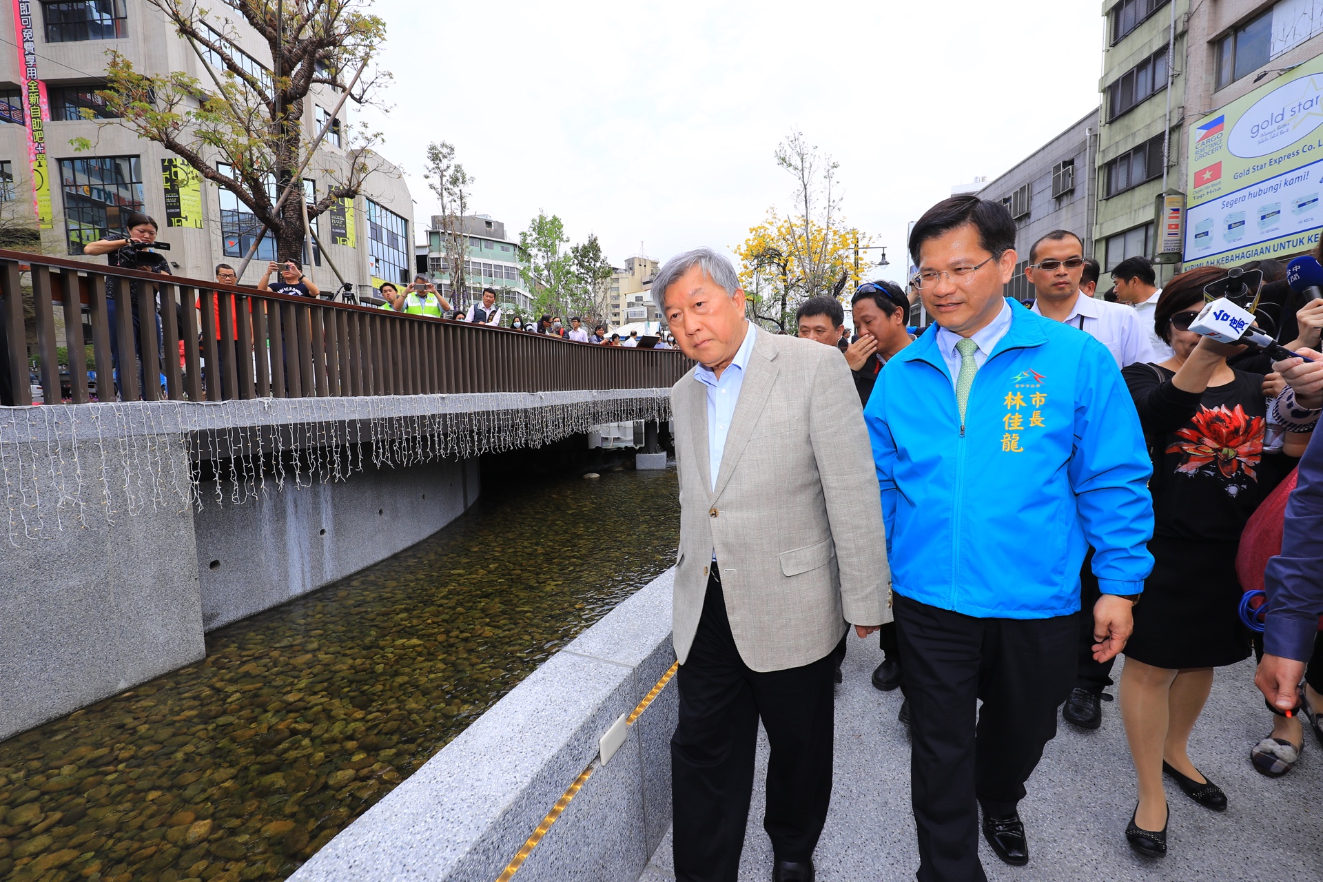 林市長表示,歡迎邱縣長率領縣府團隊到台中,綠川整治工程不只要做到不淹水,還要能清淨水質,因此如何改善水質且有足夠水量,仰賴許多創新工法;成功整治後,過年期間人潮絡繹不絕,許多人都來走訪,這裡更成為熱門打卡景點。行政院賴清德院長出席綠川開幕啟用典禮時,也肯定綠川是台灣河川治水的典範。