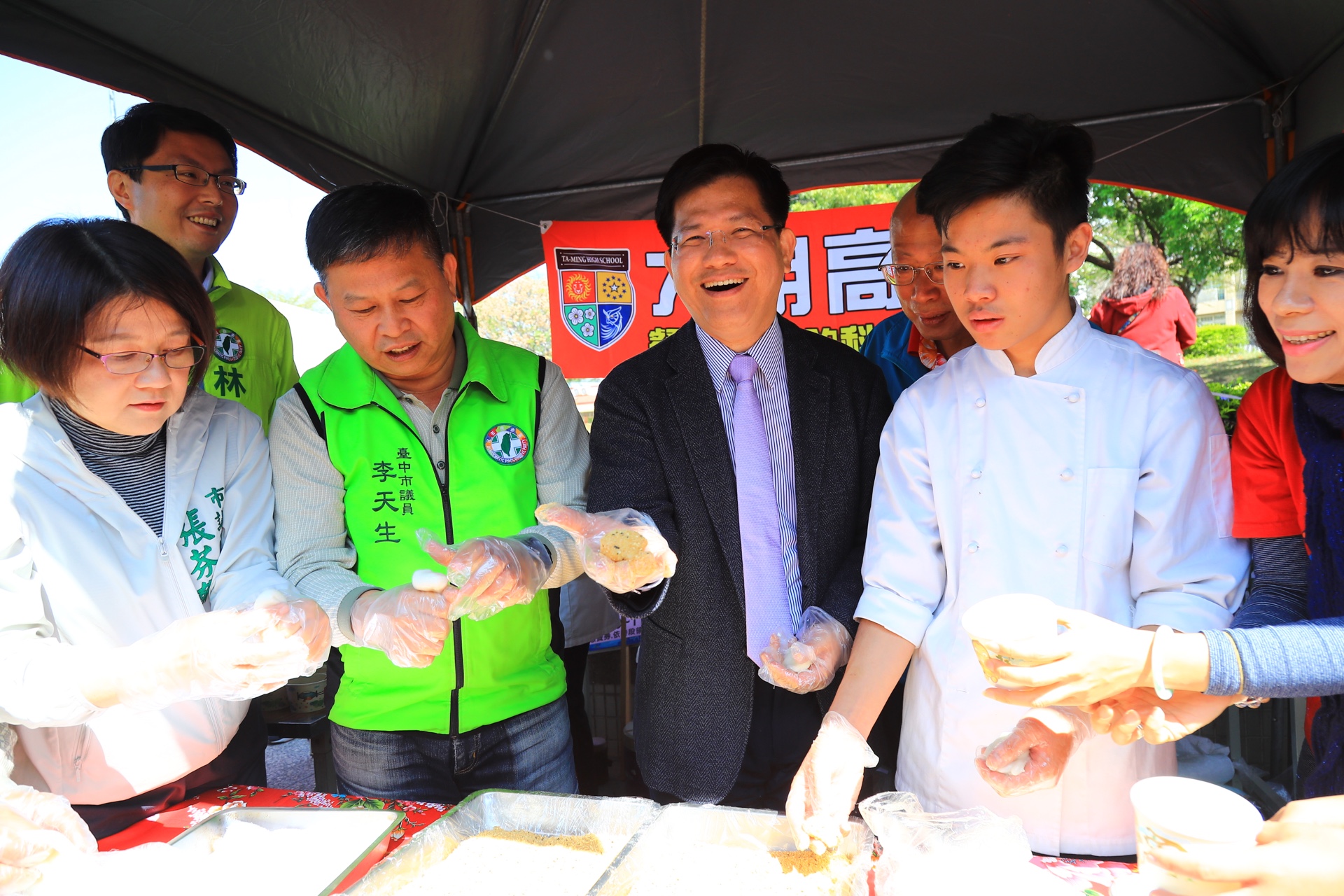 市長林佳龍上任後,也將農曆正月二十訂為「台中客家日」,希望透過舉辦客家日相關活動,推廣發揚客家文化。「台中市107年全國客家日-杙起說唱尞天穿」活動,今(10)日在大里區國光里圓形藝文廣場登場,市長林佳龍、市府客委會主委劉宏基、大里區長周崇琦、市議員李天生、張芬郁等人均到場共襄盛舉,當地學童也帶來「女媧補天穿」戲劇演出、演唱「客家世界」歌謠為活動暖場,並邀請林市長上台共舞,場面熱鬧歡喜。