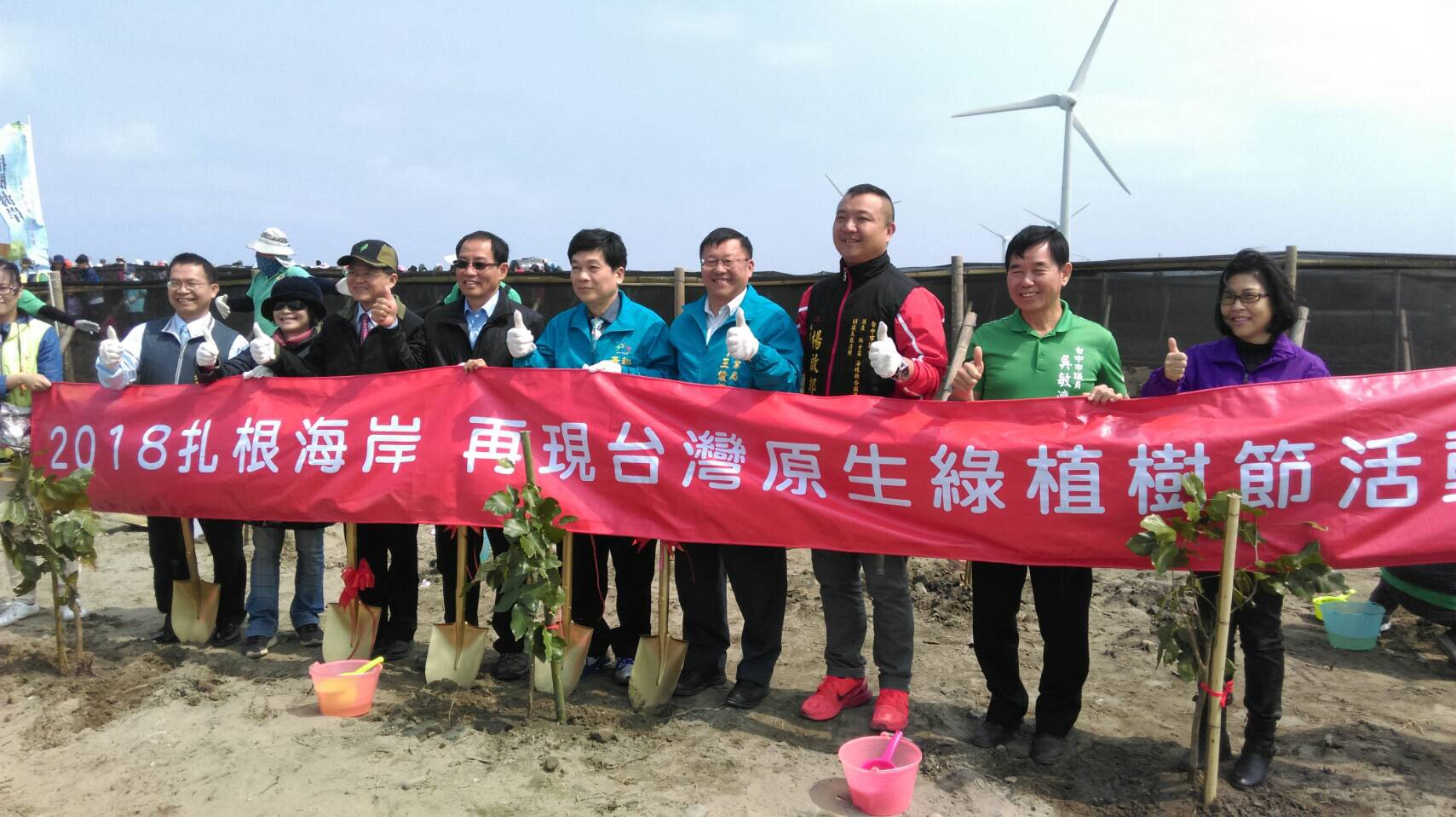 響應台中市政府「8年100萬棵植樹計畫」,並改善大甲區大安溪出海口揚塵問題,今(17)日市府秘書長黃景茂與近500名民眾於大甲區松柏漁港北防波堤旁,一起種下3,000株苗木,營造海岸防風林,期待可以讓海岸線獲得更佳保護,更對空氣品質有正面幫助。
