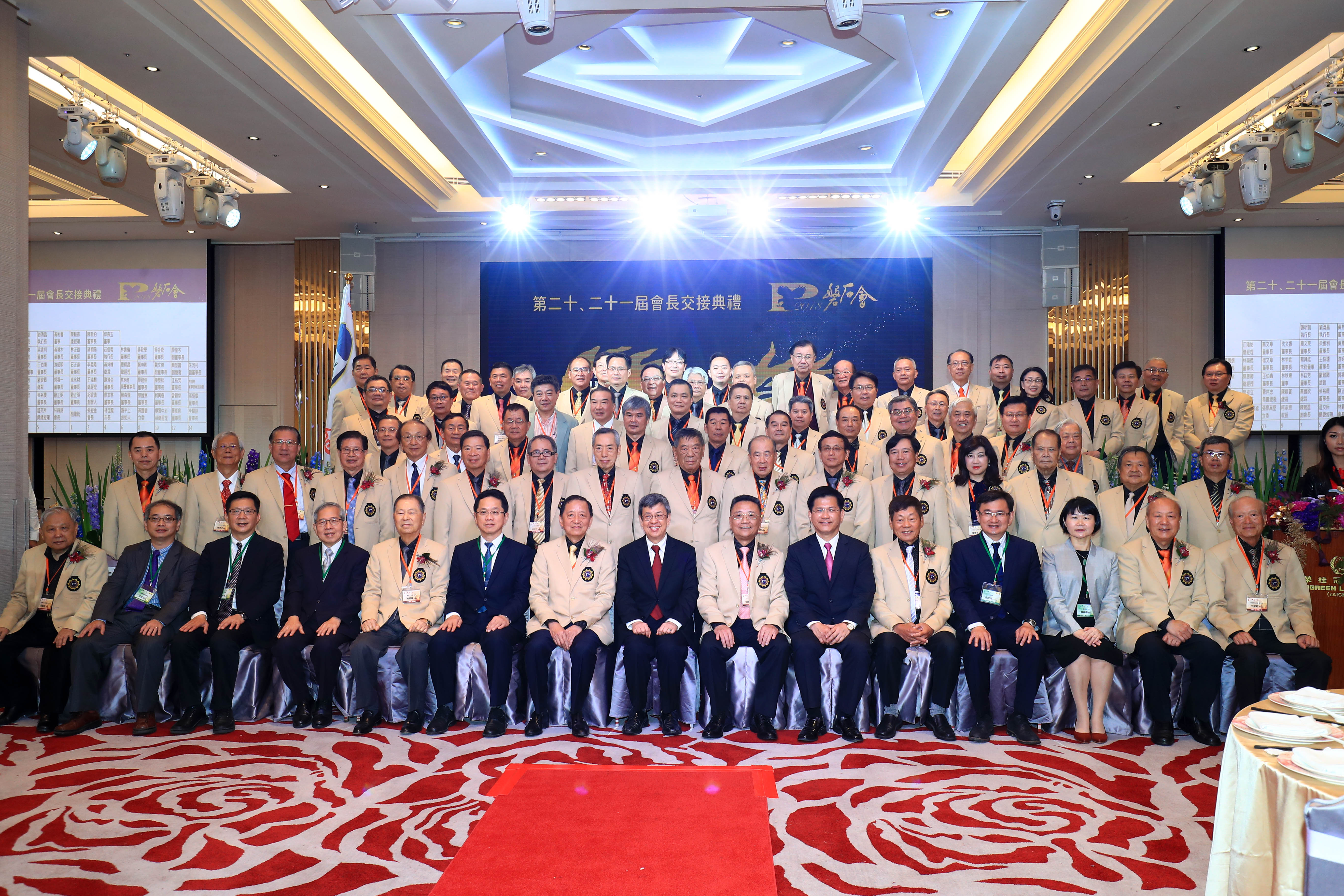 今日交接典禮在長榮桂冠酒店舉行,陳副總統、林市長等人均出席見證,立委張廖萬堅、黃國書等人也到場致意,場面盛大隆重。