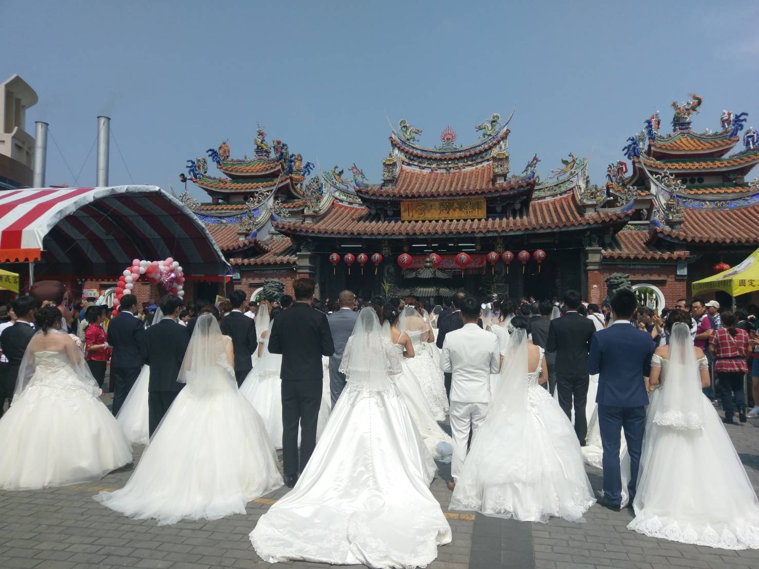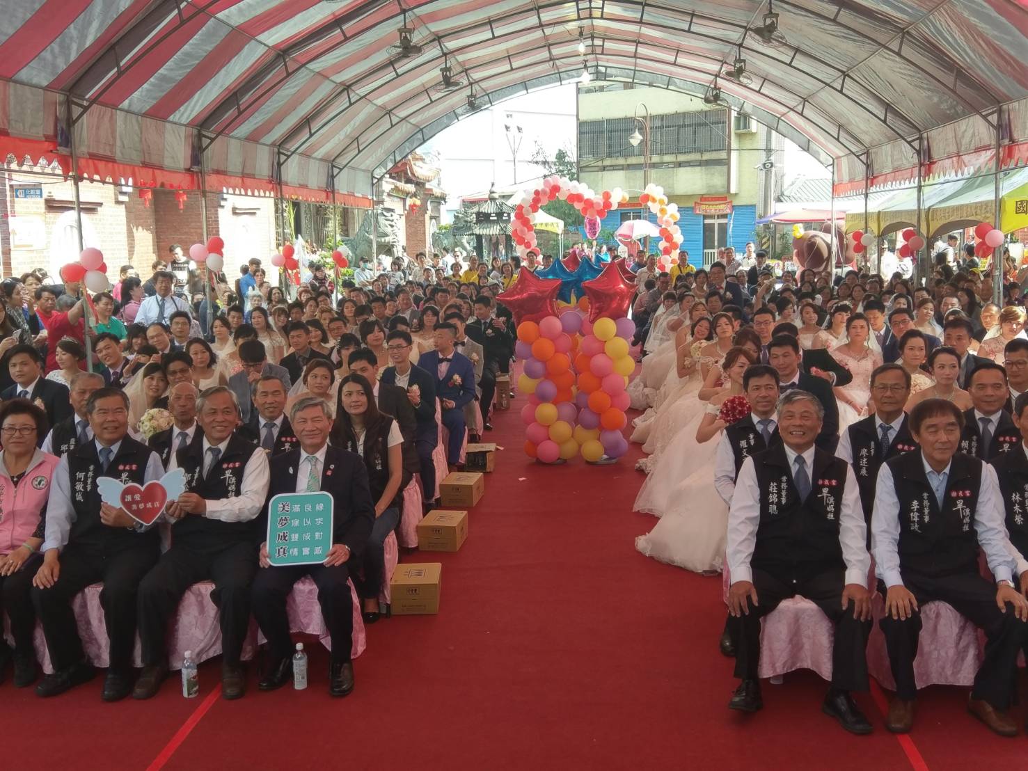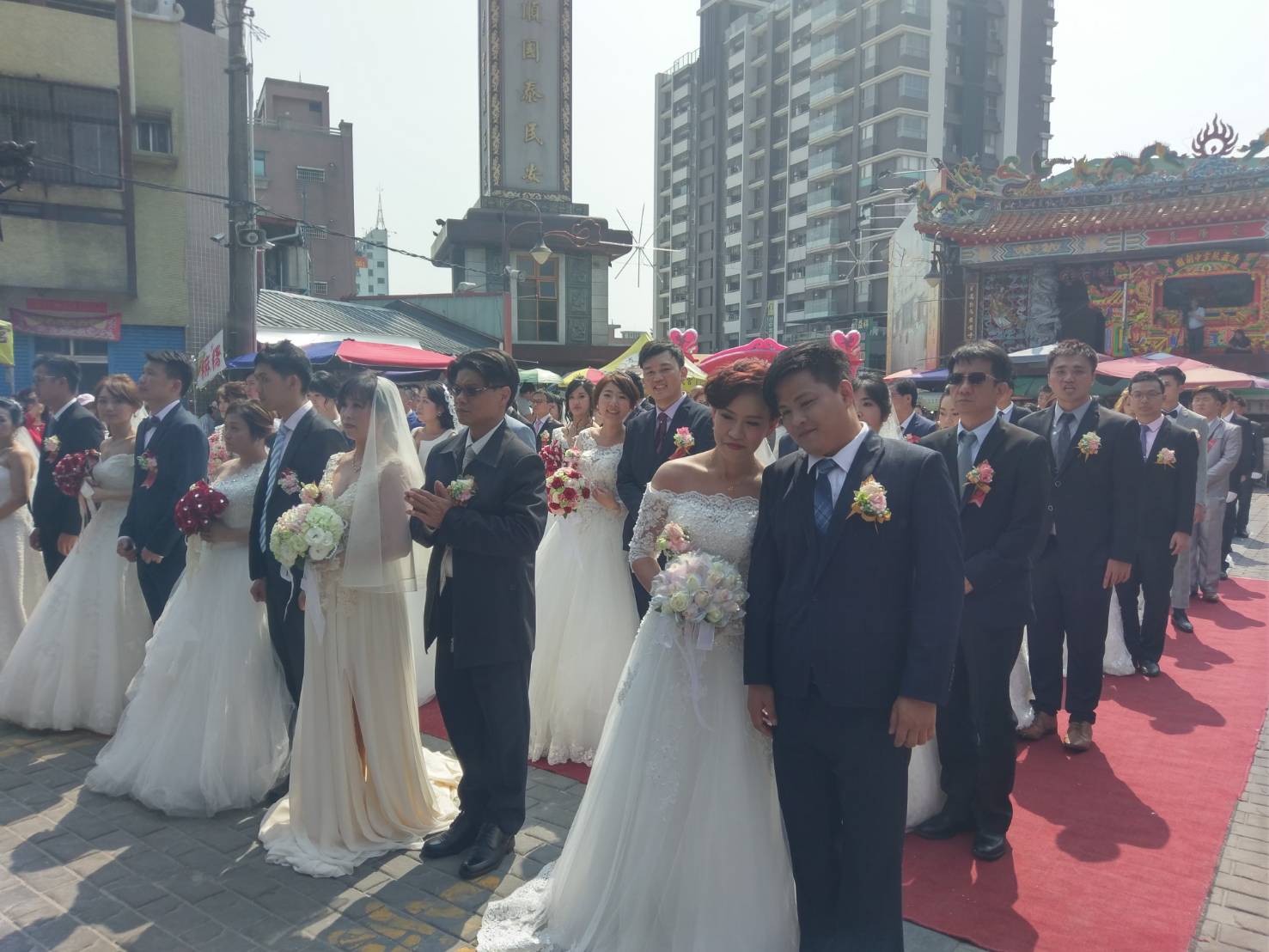 台中樂成宮與貝思特婚紗業者共同合辦「神賜福氣—金石同心」樂成宮首屆集團結婚,今(17)日於樂成宮廟埕前展開,現場有46對新人帶著天上聖母旱溪媽祖的祝福,攜手走向人生另一階段,副市長張光瑤也前往現場,祝賀新人在旱溪媽祖的見證與守護下幸福到老。