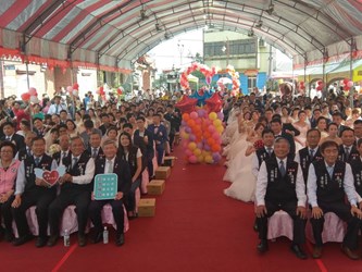 張副市長表示,他代表市長林佳龍到場祝福所有新人,恭喜大家在兩百多年歷史的樂成宮旱溪媽祖面前完成終身大事,從今以後彼此心連心共創美滿家庭;在這幸福的時刻,也期勉新人人生旅途漫長,未來雙方要一起同心面對困難,互相扶持幸福到老。