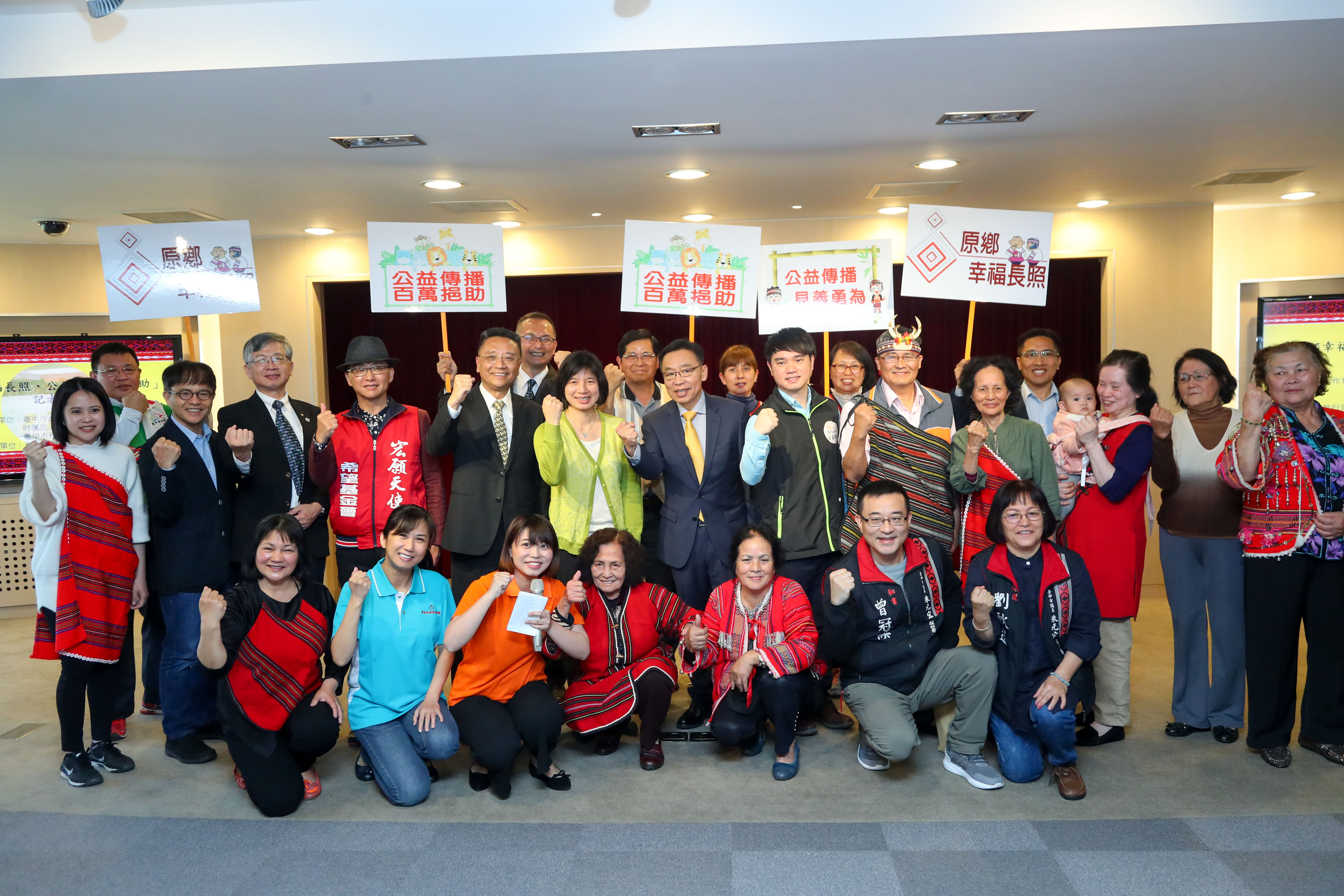 市府原民會舉行「原鄉長照幸福包裹實驗計畫-原鄉幸福長照、公益傳播百萬挹注」記者會,林副市長在原民會主委全秋雄的陪同下出席。財團法人公益傳播基金會董事長歐陽明捐贈100萬元,由達觀社區發展協會理事長吳二妹代表接受並回贈泰雅信物結盟,包括樂齡居家式長期照顧服務機構理事長林淑如、台中扶輪社長吳宏亮、以及社員台數科董事長廖紫岑、磐石會董事長張經金、宏蕎建設董事長馮輝龍、羅布森公司總經理汪世旭等來賓均與會參與,市議員朱元宏、洪金福服務處代表都到場關心。