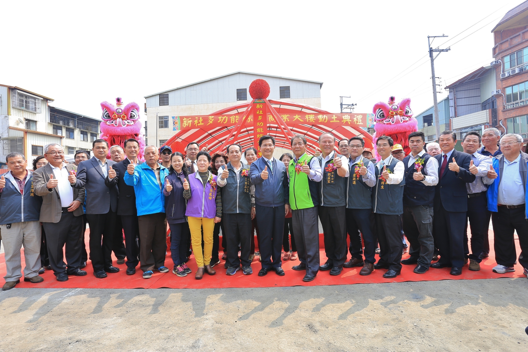 新社區公所今日舉辦多功能綜合商業大樓新建工程動土典禮,包括林市長、新社區長劉孟富、市議員蔡成圭等人均出席共襄盛舉,祈求工程平安順利。
