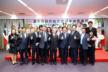 2018台中花博是獲得「國際園藝生產者協會(AIPH)」授權舉辦的世界級博覽會,台中市政府與中央氣象局今(26)日簽署合作意向書,花博期間將由氣象局提供風速、溫度、雨量等氣象預警服務,作為園區花卉澆灌及換植指引。同時,市府資訊中心也與氣象局合作整合花博資訊服務APP,民眾出門前就能獲得展場氣候資訊,參觀更便利。