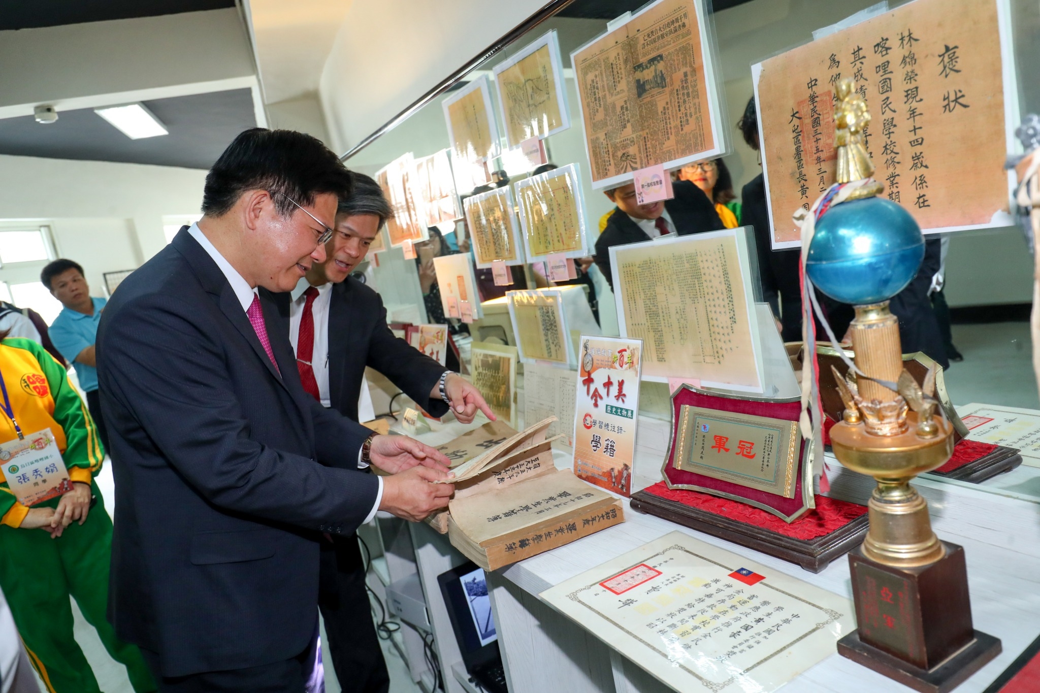 台中市今年共9所國小創校屆滿百年,市府教育局在其中的北區篤行國小舉辦教育文物展,集結百歲以上的各校文物,象徵回顧過去百年、現在及展望未來,也讓孩子體驗不一樣的學習教室。市長林佳龍表示,教育是「十年樹木,百年樹人」的志業,市府持續挹注預算,期盼在與各界攜手努力之下,構築下一個百年的教育藍圖,引領學生適性揚才,發展無限可能。