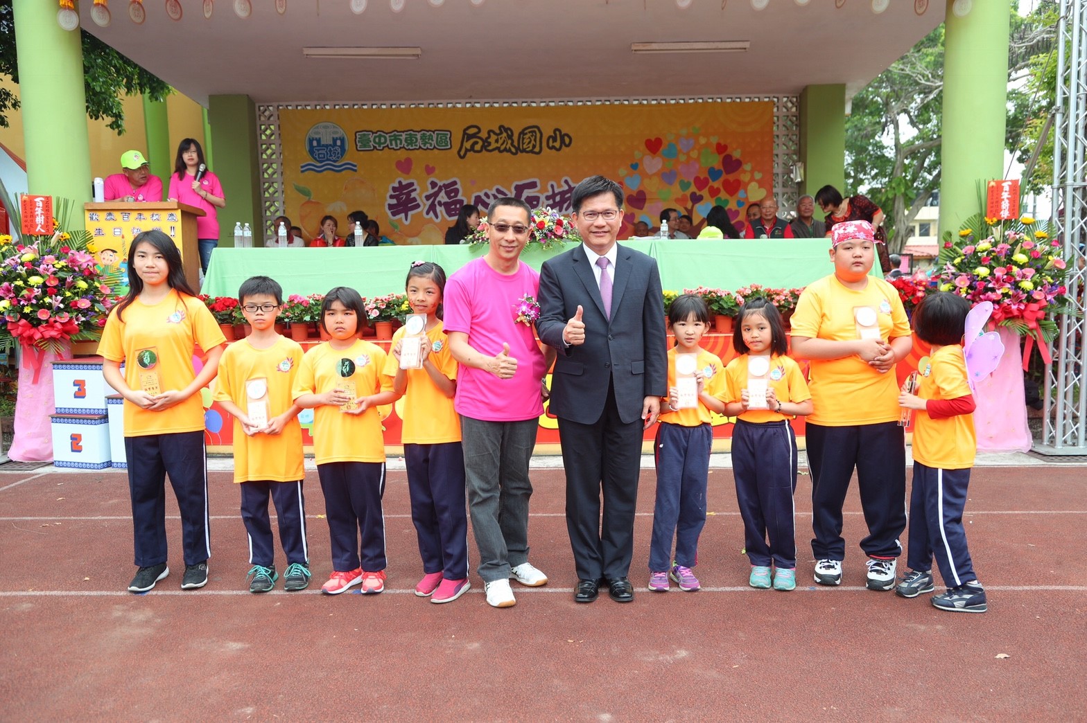 東勢區石城國小今(1)日舉行百年校慶暨石城、石角、明正三校聯合運動會,市長林佳龍出席與師生同樂,並為石城國小慶生,期勉未來持續培育優秀人才,發揮潛能。