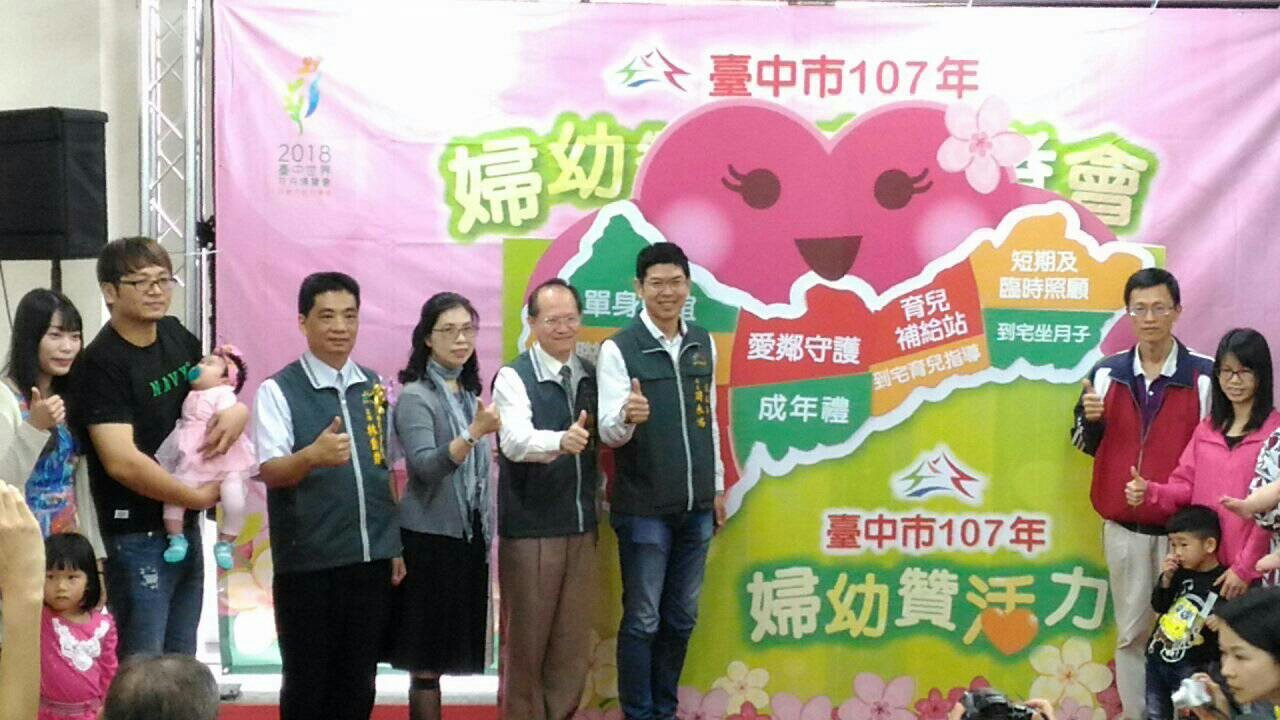 婦幼節前夕,台中市政府今(3)日在大雅區戶政事務所舉辦「婦幼贊活力記者會」,由民政局長周永鴻、社會局副局長陳坤皇、家庭教育中心主任楊山琪等人,共同向民眾宣導多項婦幼社會福利政策,包括提供前往登記結婚的新人成家福袋,以及到宅坐月子服務、生育津貼、幼兒圖書證等政策,盼完善福利政策,讓民眾從結婚、生育、育兒等階段都能受到照顧,以減輕家庭負擔。
