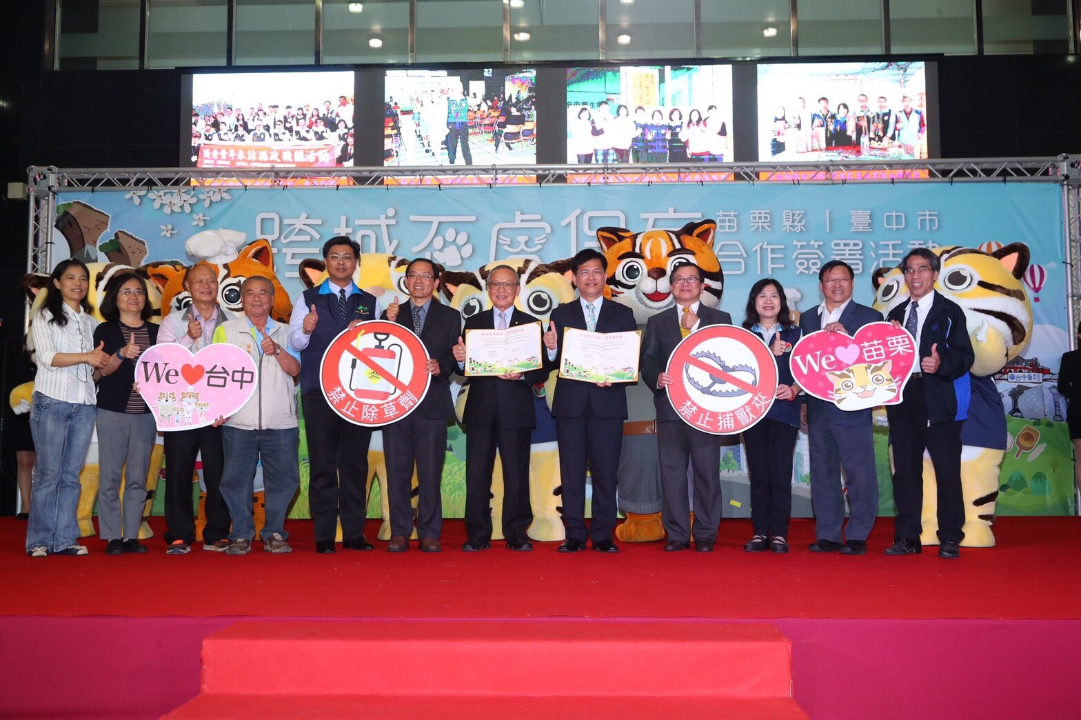 台中市與苗栗縣政府簽訂「跨域石虎保育合作備忘錄」,未來兩縣市將緊密合作共享研究調查資源,舉辦石虎生態保育相關教育訓練與工作坊,保護並建構台中與苗栗間大安溪石虎遷徙的生態廊道,全面守護石虎生存環境。