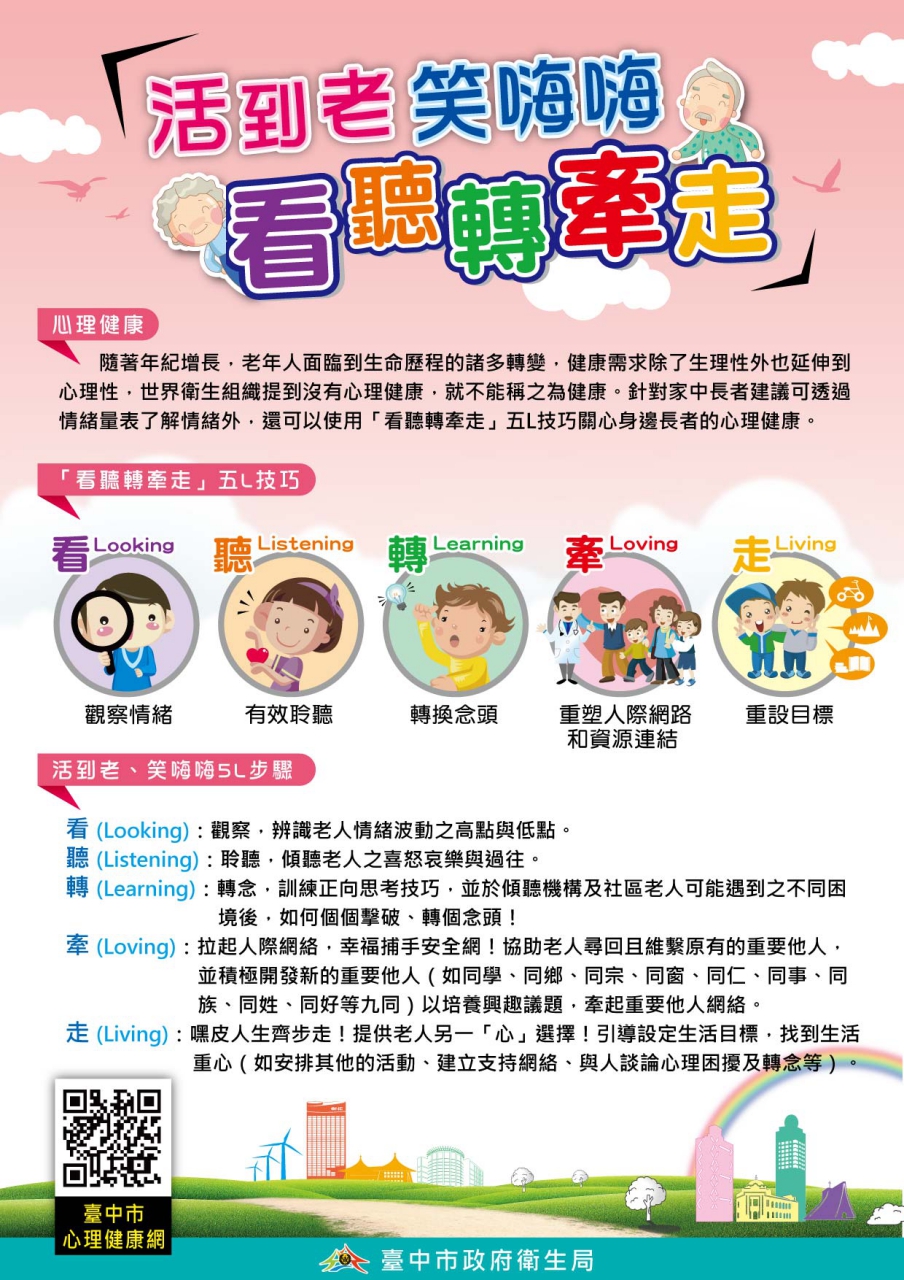 另若有嚴重情緒困擾時,可隨時撥打24小時安心專線0800-788-995(請幫幫,救救我)或向各區衛生所洽詢長者心理師到宅服務,一同促進長者心理健康。