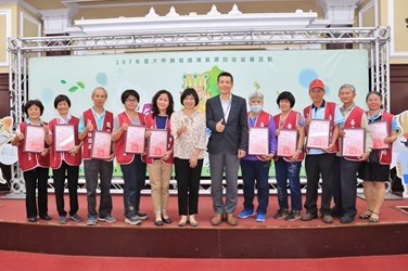 環保局表示,台中市資源回收環保志工隊目前有志工74人,106年總服務時數4,500小時,是協助資源回收工作幕後重要推手;今日接受表揚的18位106年服務時數達80小時的績優回收志工中,裁縫高手張秀暖隊長服務時數達369小時,帶領志工製作愛心購物袋及飲料提袋不遺餘力,而透過回收志工及寶之林師傅修護的47輛二手自行車也由五權國中代表受贈,將贈給12所國高中轉贈清寒學子,讓物盡其用。