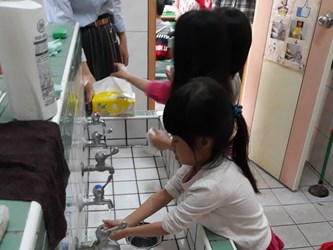 至於在居家及教托育機構內的環境部分,建議可用市售含氯漂白水泡製成500ppm濃度(1:100),採擦拭消毒方式,消毒的重點包括門把、樓梯扶手、書桌椅、玩具、書本、娃娃車及幼兒手部易觸摸之處等,若擔心殘留問題,可在10分鐘後再以清水擦拭消毒區域。